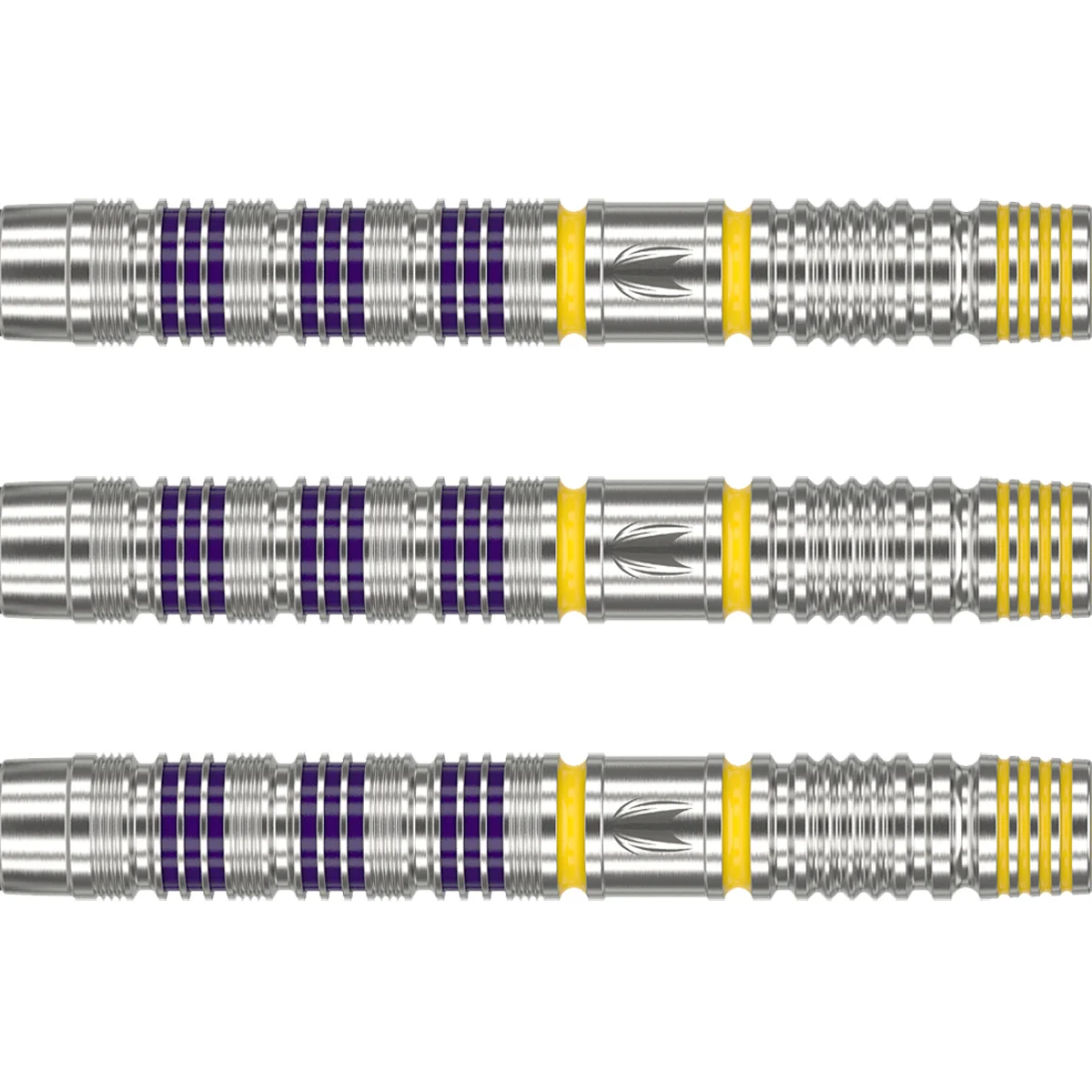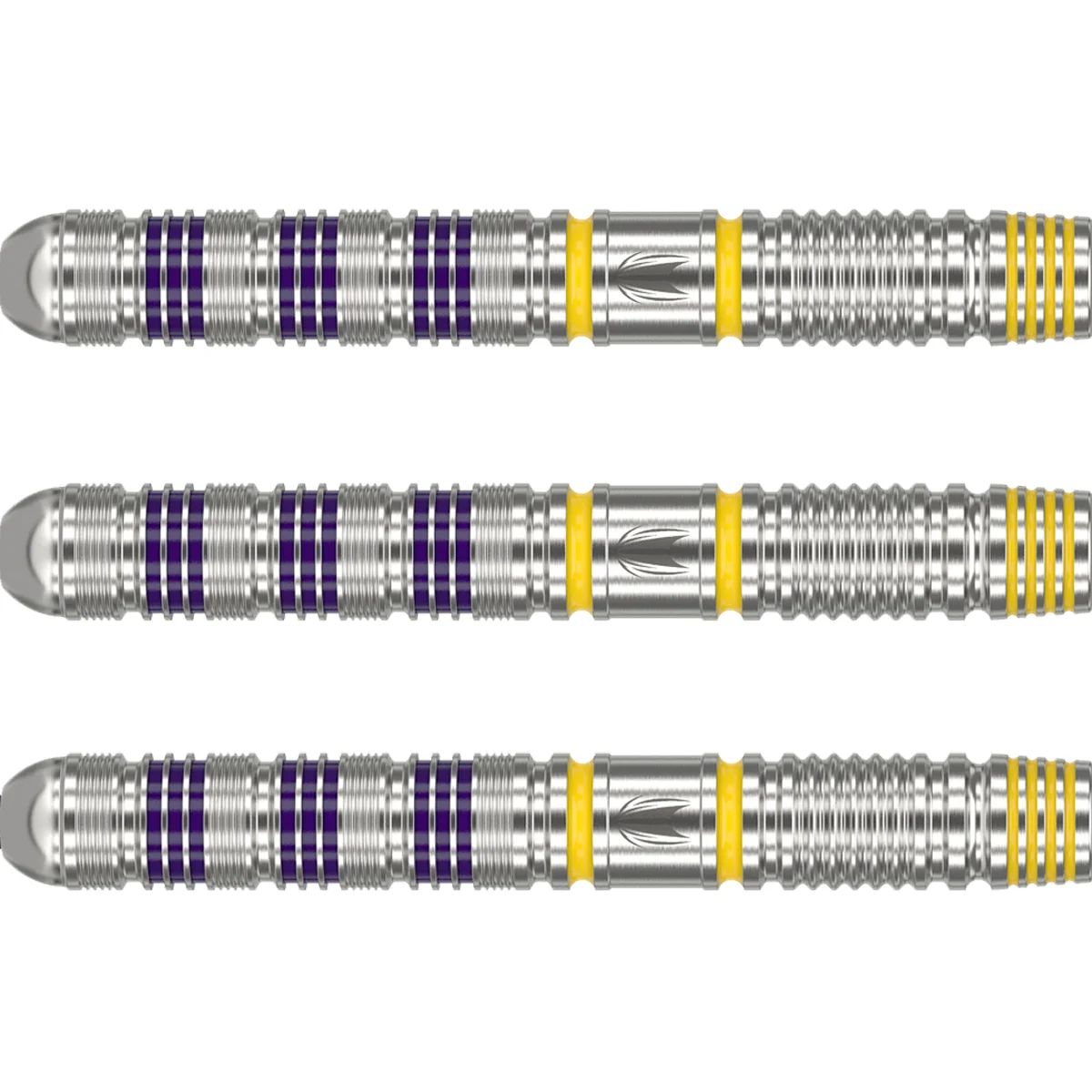 Target Swiss Point Luke Littler Loadout Steeldarts - Vielseitige Präzision mit innovativem Swiss Point System. Die Target Swiss Point Luke Littler Loadout Steeldarts bestechen durch ihre hochwertige Fertigung aus 90% Tungsten und eine geradlinige Barrelform mit ausgewogener Balance. Diese Spielerdarts von Luke Littler sind mit dem patentierten Swiss Point System ausgestattet, das es ermöglicht, die Spitzen in wenigen Sekunden mit dem beiliegenden Tool zu wechseln. Durch diese innovative Technologie kannst du die Swiss Point Spitzen der Nuke Darts mühelos mit unterschiedlichem Grip, verschiedenen Längen und Farben spielen. Der silberne Luke Littler Steeldart von Target zieht mit seinen lila und gelben Highlights alle Blicke auf sich, und das nicht nur wegen seines ansprechenden Designs. Das Barrel mit mehreren Ringgripzonen sorgt nicht nur für ein beeindruckendes Feedback, sondern auch für ein herausragendes Flugverhalten. Die Target Swiss Point Luke Littler Loadout Steeldartpfeile sind in den Barrelgewichten 22, 23 und 24 Gramm erhältlich. Das Gesamtgewicht inklusive Spitze, Shaft und Flight liegt nur etwa zwei Gramm darüber. Im Lieferumfang dieser silbernen Spielerdarts sind präzise hergestellte Dartpfeile, das Swiss Point Tool, ein Satz schwarzer Spitzen sowie gelbe Target Pro Grip Shafts und Spielerflights von Luke Littler enthalten. Erlebe vielseitige Präzision und innovative Technologie mit diesen erstklassigen Steeldarts.GewichtBarrellängeDurchmesser22g52mm6,3mm23g52mm6,5mm24g52mm6,6mm