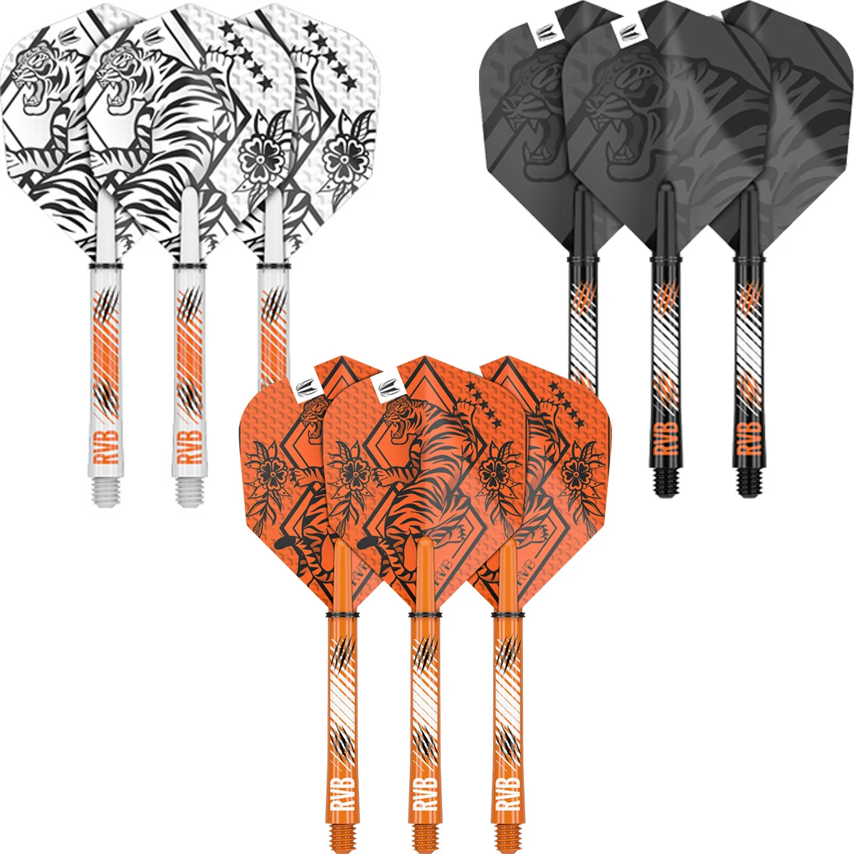 Target INK Flights & Shafts Bundle - das Target INK Themenpaket wurde von den talentierten Target-Designern von Hand entworfen und gezeichnet und ist von der INK-Kollektion und dem fünfmaligen World Champion, Raymond van Barneveld, inspiriert. Im Set enthalten sind 3 Sätze Pro Grip-Schäfte in 3 Farbvarianten mit eigenem Design und 3 Sätze N°6 Flights in 3 Farbvarianten mit Spot-UV-Druckdesign und 100-Mikron-Material für zusätzliche Haltbarkeit. Die Schäfte sind mit dem üblichen 2BA Gewinde versehen und in den Längen short, midi und medium erhältlich.