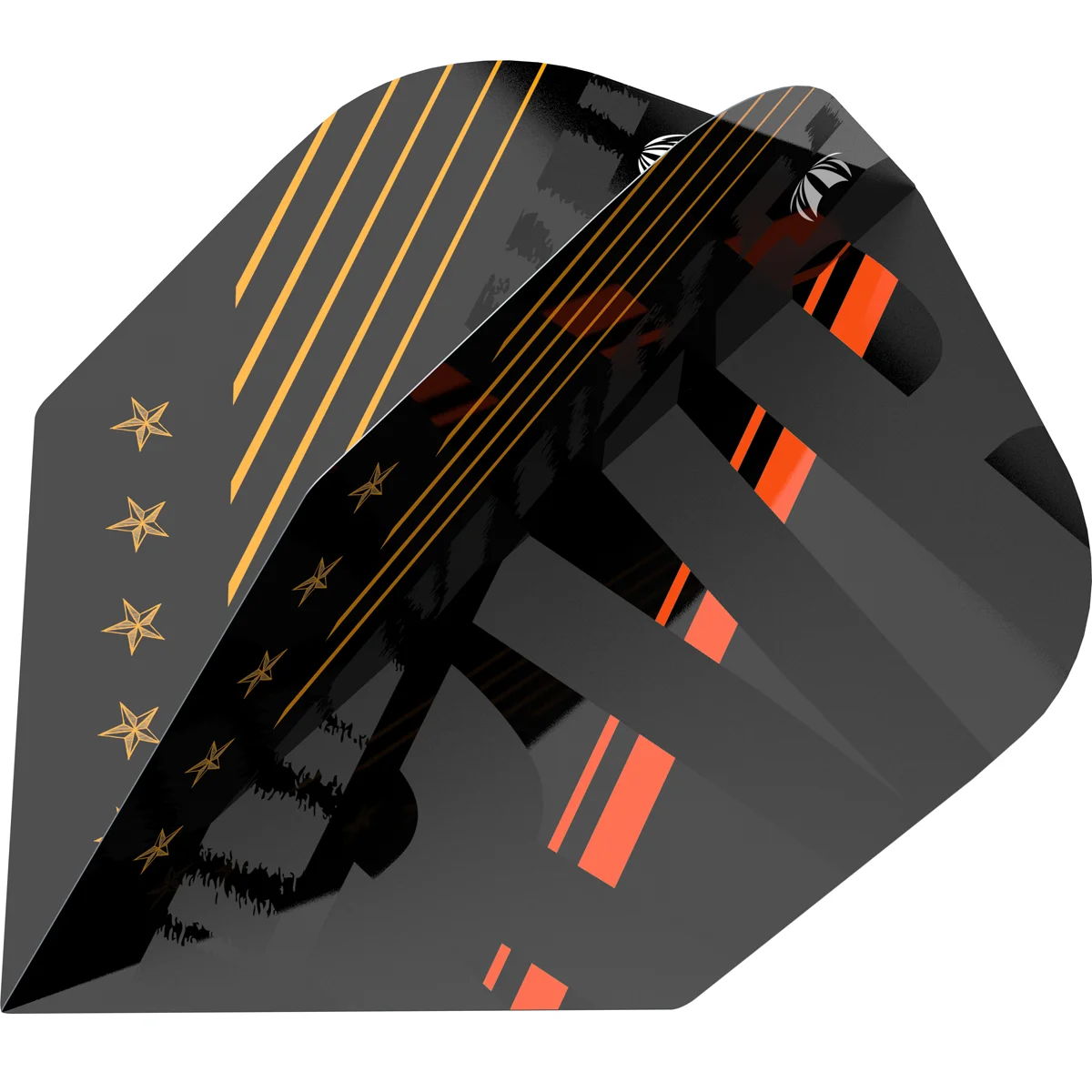 Original Flights der gleichnamigen Target Raymond van Barneveld 80% Black Darts mit einer Stärke von 100 Mikron in der etwas schmaleren Standard Form N°6.