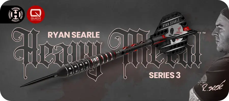 Seit 2024 wird Ryan Searle von Harrows Darts ausgestattet – einer der traditionsreichsten Marken im Dartsport. Die Zusammenarbeit steht für Qualität, Innovation und typisch britische Handwerkskunst. Passend dazu findest du bei uns seine hochwertigen Harrows Ryan Searle Series 3 Quick Point Steeldarts – präzise, griffig und in markantem „Heavy Metal“-Design gefertigt. Für ambitionierte Einsteiger empfehlen wir außerdem die preisgünstigeren Harrows Heavy Metal Steeldarts, die mit ihrem robusten Setup und solider Verarbeitung einen idealen Einstieg in die Ryan-Searle-Serie bieten.