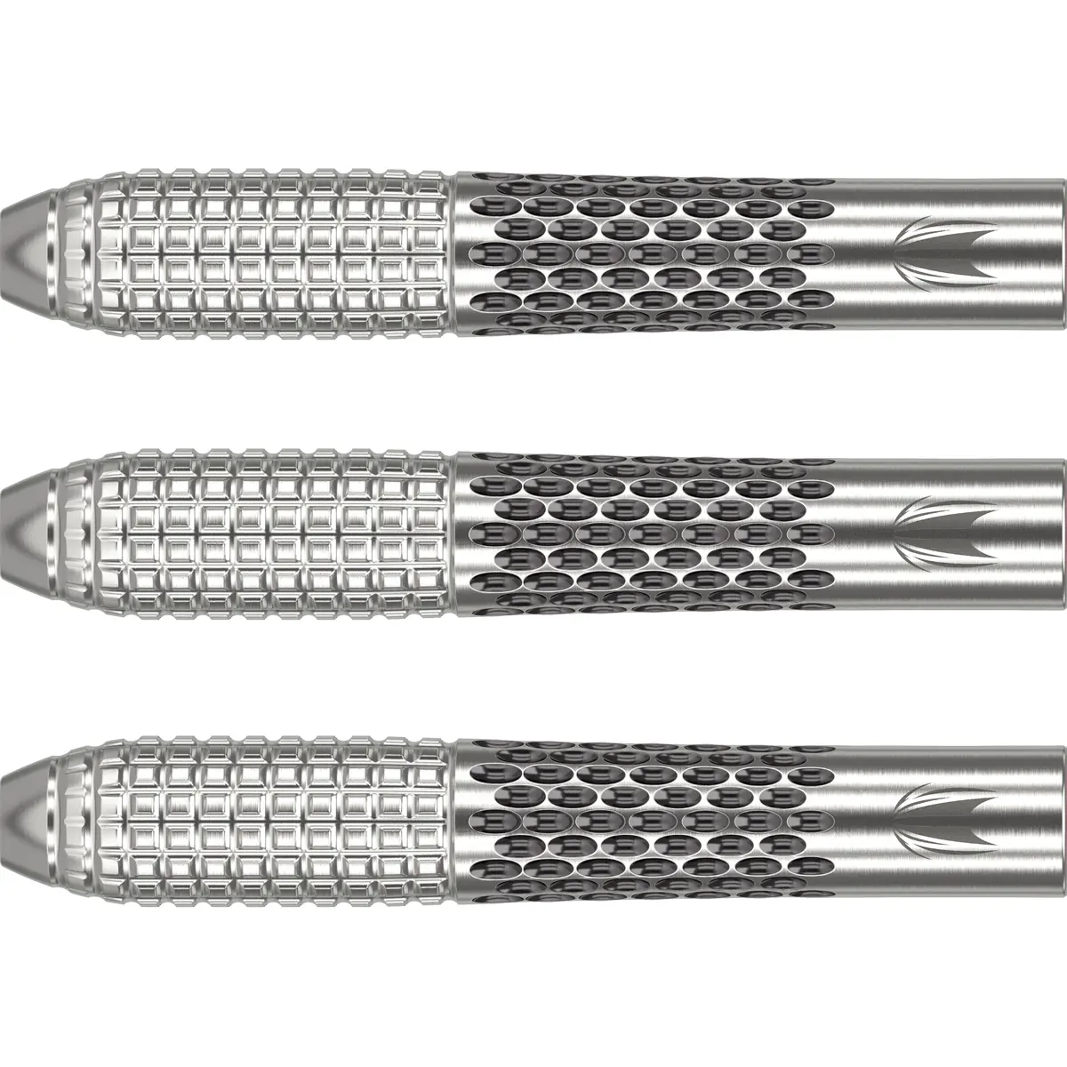 Stephen Bunting Gen 5 Steeldarts - Präzision und Kontrolle für Profis Entdecke die fünfte Generation Stephen Bunting Darts von Target – die Gen 5 Swiss Point Steeldarts. Diese hochwertigen Darts wurden für ambitionierte Spieler entwickelt und bieten eine herausragende Kombination aus Präzision und Kontrolle. Produktmerkmale: Swiss Point Dartspitzen System: Wechsel Deine Dartspitzen schnell und einfach mit dem innovativen Swiss Point System. Verschiedene Gewichte: Erhältlich in 18g, 22g, 23g und 25g, um Deinen individuellen Spielstil zu unterstützen. Hochwertiges Material: Gefertigt aus 95 % Tungsten für maximale Haltbarkeit und eine schlanke Form. Präzisionsfräsung und Grip: Das Barrel ist vorne präzise gefräst und hat hinten radiale Rillen, die einen einzigartigen Griff für verbesserte Kontrolle bieten. Exklusive Pro Grip Evo Dartshafts: Inklusive schwarz-roter Pro Grip Evo Dartshafts, die es nicht einzeln zu kaufen gibt. Neue Spielerflights: Enthält die neuen Gen5 Stephen Bunting Spielerflights, die perfekt auf das Design und die Leistung der Darts abgestimmt sind. Der frontlastige Barrel ist mit einer schwarzen Elektroplattierung überzogen, um die Haltbarkeit und Leistung des Darts zu verbessern. Lieferumfang: 3x Stephen Bunting Gen 5 Steeldarts 3x Pro Grip Evo Dartshafts (schwarz-rot) 3x Gen5 Stephen Bunting Spielerflights Warum die Stephen Bunting Gen 5 Steeldarts wählen? Diese Darts wurden speziell für Spieler entwickelt, die höchste Ansprüche an ihr Equipment stellen. Mit einer Kombination aus hochwertigen Materialien, präziser Verarbeitung und einzigartigem Design bieten die Gen 5 Steeldarts von Stephen Bunting eine unvergleichliche Spielerfahrung. Entdecke die perfekte Balance und Kontrolle bei jedem Wurf – sichere Dir jetzt Dein Set!GewichtBarrellängeDurchmesser18g40,9mm6,6mm22g47,0mm6,8mm23g47,0mm6,9mm