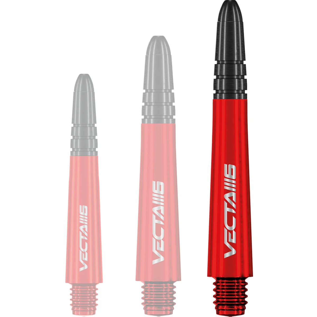 Die Winmau Vecta Shafts sind im Blade 6 Design erhältlich und bieten drei verschiedene Längenoptionen: 34, 37 und 40 Millimeter. Dank des gängigen 2BA-Gewindes passen diese Kombishafts auf alle herkömmlichen Steel- und Softdarts. Das schicke Blade Design in elegantem Rot mit silberner Aufschrift und der auffälligen schwarzen Flightaufnahme verleiht den Shafts nicht nur einen modernen Look, sondern stellt auch ein echtes optisches Highlight dar.