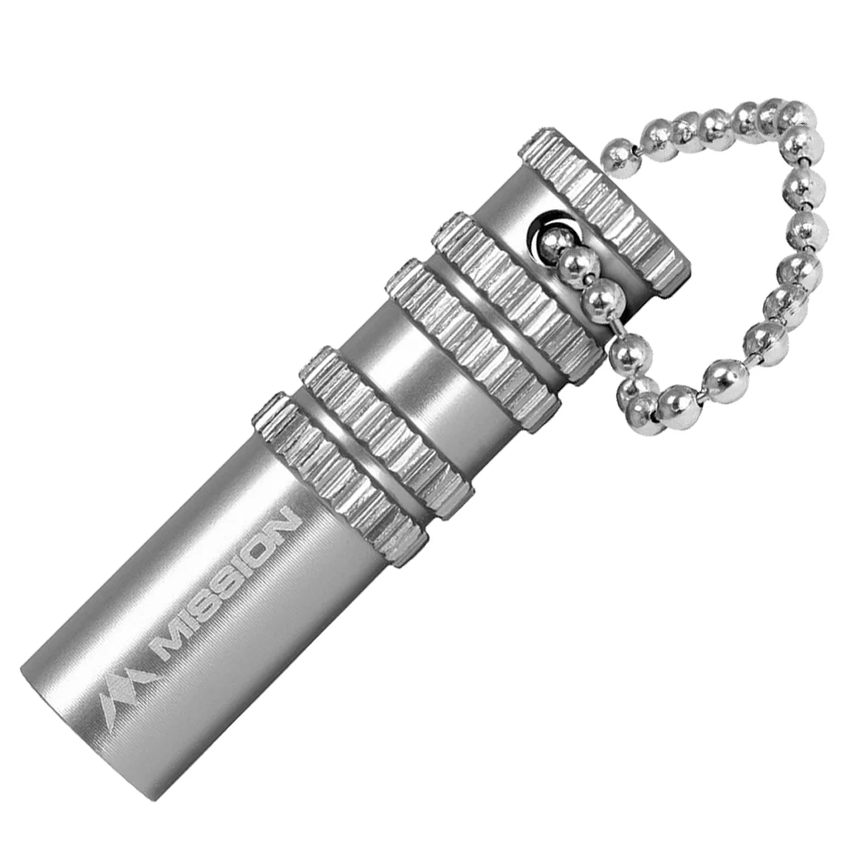 Schnelles und Einfaches wechseln abgebrochener Dartschäfte und Dartspitzen. Beim Dartspielen kann es frustrierend sein, wenn ein Dartschaft oder eine Dartspitze abbricht. Doch mit dem Mission Broken Shaft Remover silber gehört dieser Ärger der Vergangenheit an. Dieses praktische Werkzeug ermöglicht es dir, abgebrochene Dartschäfte oder Dartspitzen schnell und unkompliziert zu entfernen. Die Anwendung des Removers ist denkbar einfach: Du setzt die Öffnung des Removers auf das abgebrochene Stück, das im Barrel steckt, und drehst ihn. Im Inneren des Removers befindet sich eine "Zange", die das Bruchstück herausdreht, sodass es mühelos ausgetauscht werden kann. Damit sparst du nicht nur Zeit, sondern kannst auch sofort wieder mit dem Dartspielen loslegen. Der Mission Broken Shaft Remover ist mit einer kleinen Kette ausgestattet, die bereits vorinstalliert ist. Dadurch kannst du ihn bequem an einer Tasche oder einem anderen Gegenstand befestigen und hast ihn immer griffbereit, wenn du ihn benötigst. So bist du bestens vorbereitet und kannst ungestört dein Dartspiel genießen. Hol dir dieses praktische Werkzeug und sei jederzeit bereit, eventuelle Probleme beim Dartspielen im Handumdrehen zu lösen.