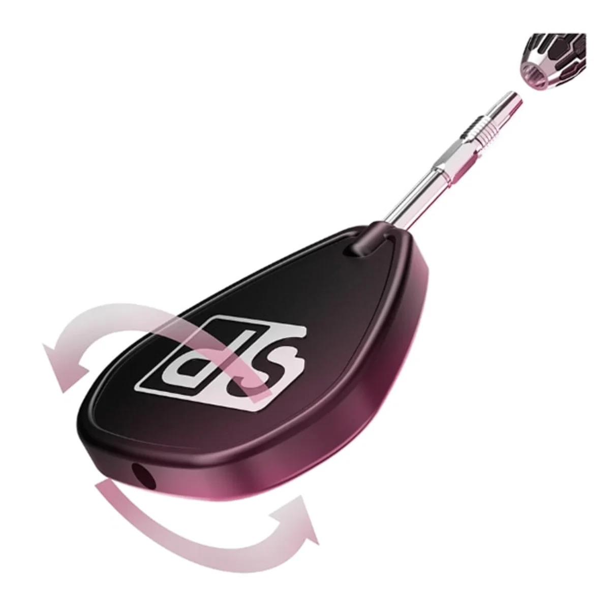 Das Karella Mult Fixit ist ein unverzichtbares Allround-Tool für jeden Dart-Enthusiasten! Der handliche Werkzeugschlüssel, mit einer Länge von etwa 8 cm und aus eloxiertem Metall gefertigt, ist das perfekte Utensil für Dartspieler. Mit diesem Dartwerkzeug können mühelos Soft- und Metallspitzen festgezogen oder herausgedreht werden, Shafts werden sicher befestigt und die Schlitze der Shafts nach Bedarf erweitert oder zusammengedrückt. Die speziellen Segmente ermöglichen sogar das einfache Entfernen abgebrochener Soft Spitzen.