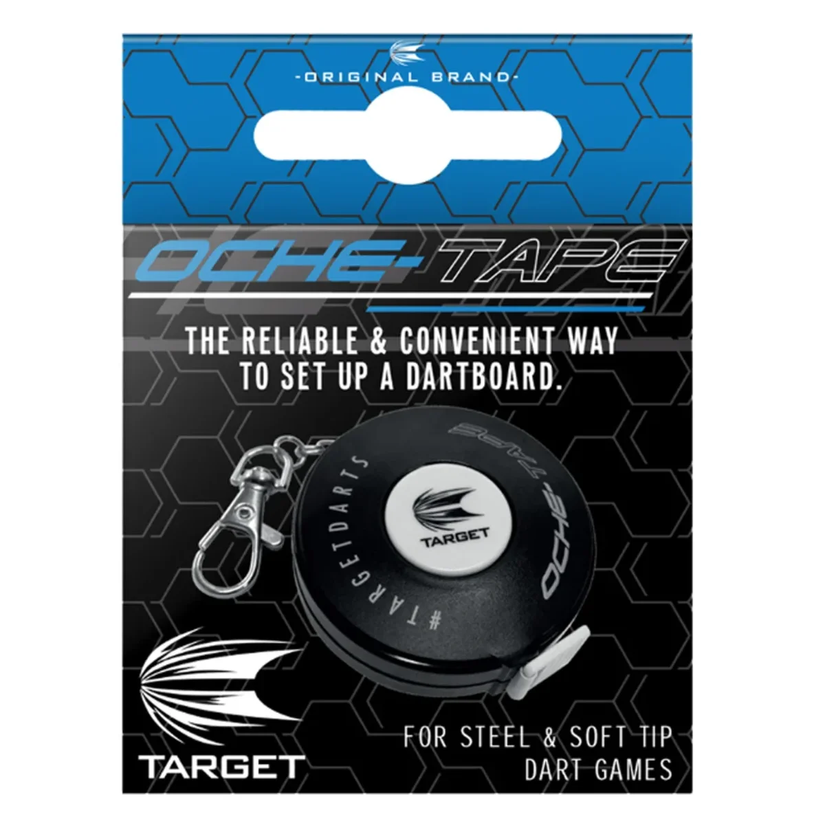Mit dem Target Oche Tape hat man eine bequeme und einfache Möglichkeit den Abstand & die Höhe des Dartboards auszumessen. Mit dem Oche-Tape kann die Höhe des Dartboards beim aufhängen und der diagonale Abstand vom Bullseye bis zur Abwurfmarkierung gemessen werden. Der Dartboard Abstandmesser von Target lässt sich durch einen Federmechanismus einrollen und ist auf beiden Seiten beschriftet.