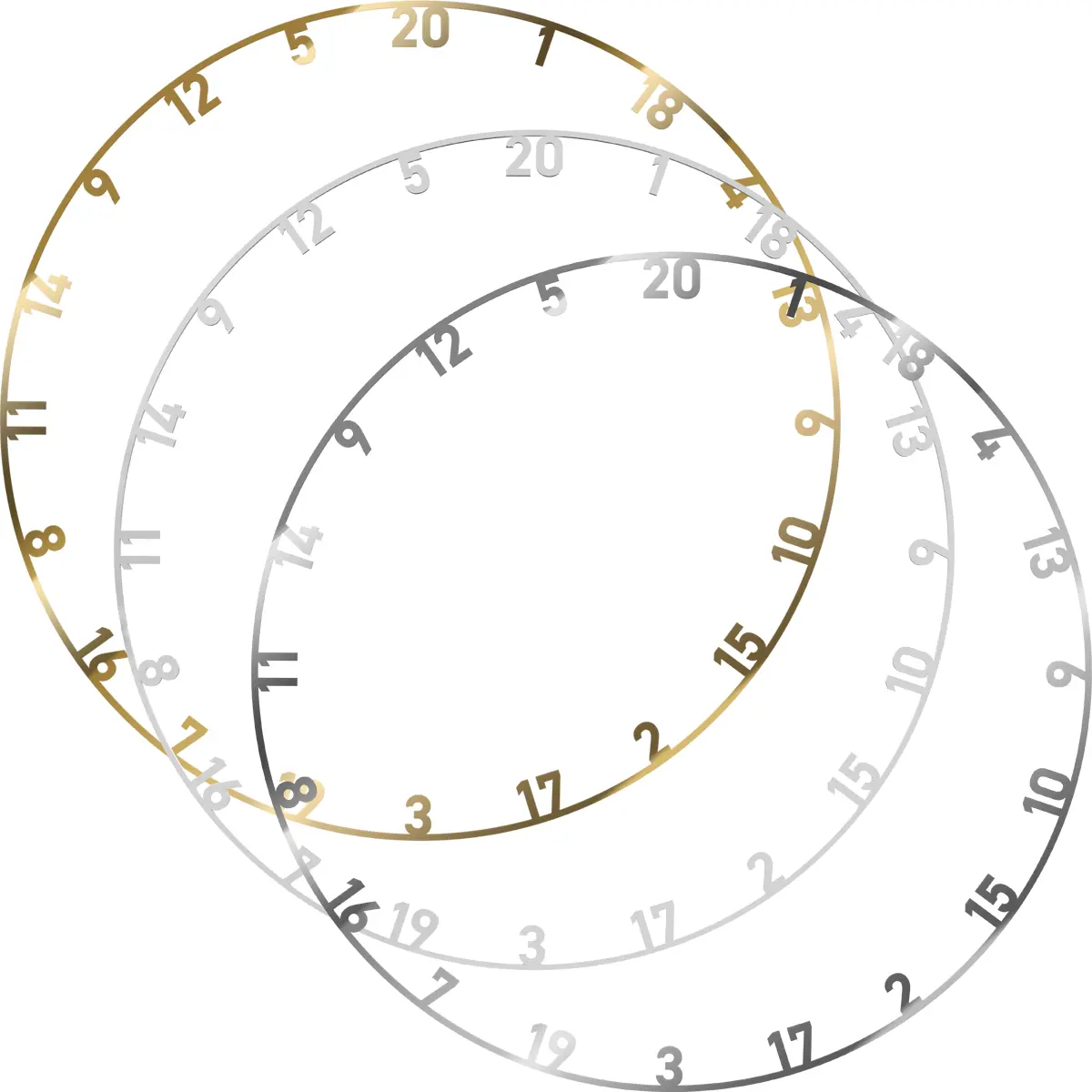 Neuer Look für Deine Dartscheibe gefällig? Mit dem Bull's NL Metall Dartboard Nummernring Set kannst Du das Aussehen Deiner Dartscheibe schnell und einfach verändern. Das Set enthält drei hochwertige Metallringe in Gold, Silber und Weiß, mit denen Du Deine Dartscheibe individuell gestalten kannst. Perfekt für Spieler, die Wert auf eine ansprechende und professionelle Optik legen. Die einfache Installation macht es möglich, den Zahlenring mühelos an jeder Standard-Dartscheibe zu befestigen. So kannst Du sofort mit dem Spielen beginnen. Die universelle Kompatibilität sorgt dafür, dass dieses Set zu allen gängigen Dartscheiben passt, sodass Du Dein Dartboard ohne Aufwand aufwerten kannst. Produktvorteile: Individuelle Gestaltung: Ändere das Aussehen Deiner Dartscheibe mit drei eleganten Farben Einfache Installation: Schnell und mühelos an Standard-Dartboards zu befestigen Professionelle Optik: Verleiht Deiner Dartscheibe ein stilvolles und ansprechendes Aussehen Universelle Kompatibilität: Passend für alle Standard-Dartscheiben Verpasse Deiner Dartscheibe einen frischen, stilvollen Look und sorge für ein professionelles Erscheinungsbild – mit dem Bull's NL Metall Dartboard Nummernring Set.