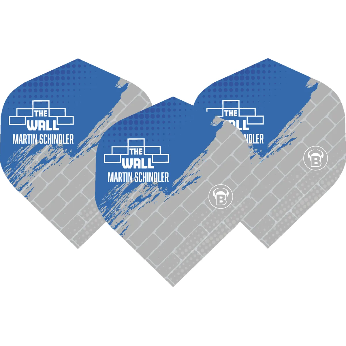 Das auffällige grau-blaue Design mit markanten Mauerelementen verleiht deinem Dart-Setup eine einzigartige Optik und ist eine Hommage an Martin Schindlers Spitznamen "The Wall".