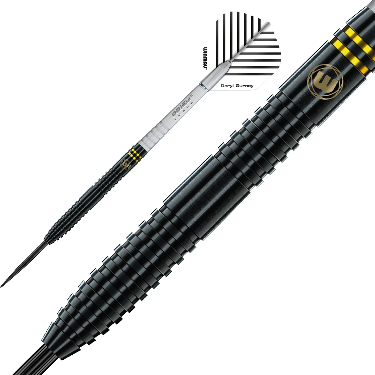 Die schwarzen Daryl Gurney Steeldarts von Winmau haben einen gerade verlaufenden, etwas längeren Barrel mit einem Tungstengehalt von 90%. Der ideale Dartpfeil wenn Du die Finger beim greifen der Darts etwas weiter auseinander hältst.