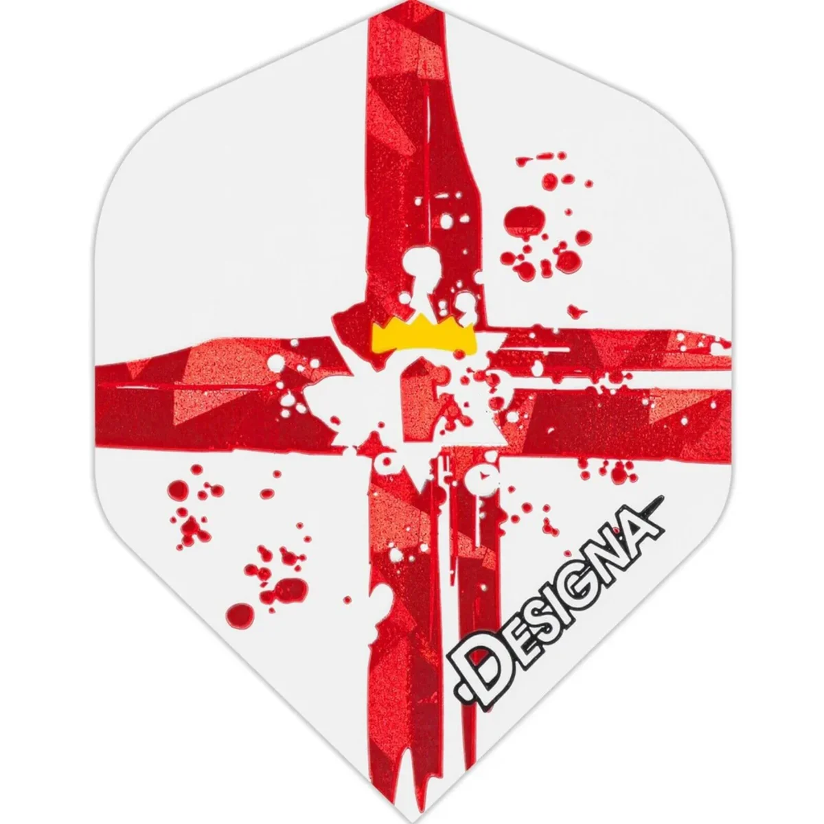 Die Designa Patriot Hologram Dart Flights haben eine Materialstärke von 75 Mikron. Auf die beliebte Standard Form N°2 sind Landesfarben in einem hochwertigen und kräftigen 2D - Druck angebracht.