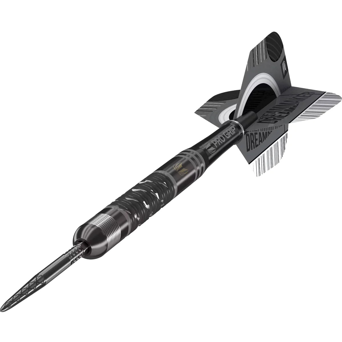Exklusiv mit einem Barrelgewicht von 23 oder 24 Gramm bei uns erhältlich, werden die Dimitri van den Bergh X Echo Steeldarts mit hochwertigem Zubehör: Pro Grip Shafts und Dreammaker Dartflights ausgeliefert.