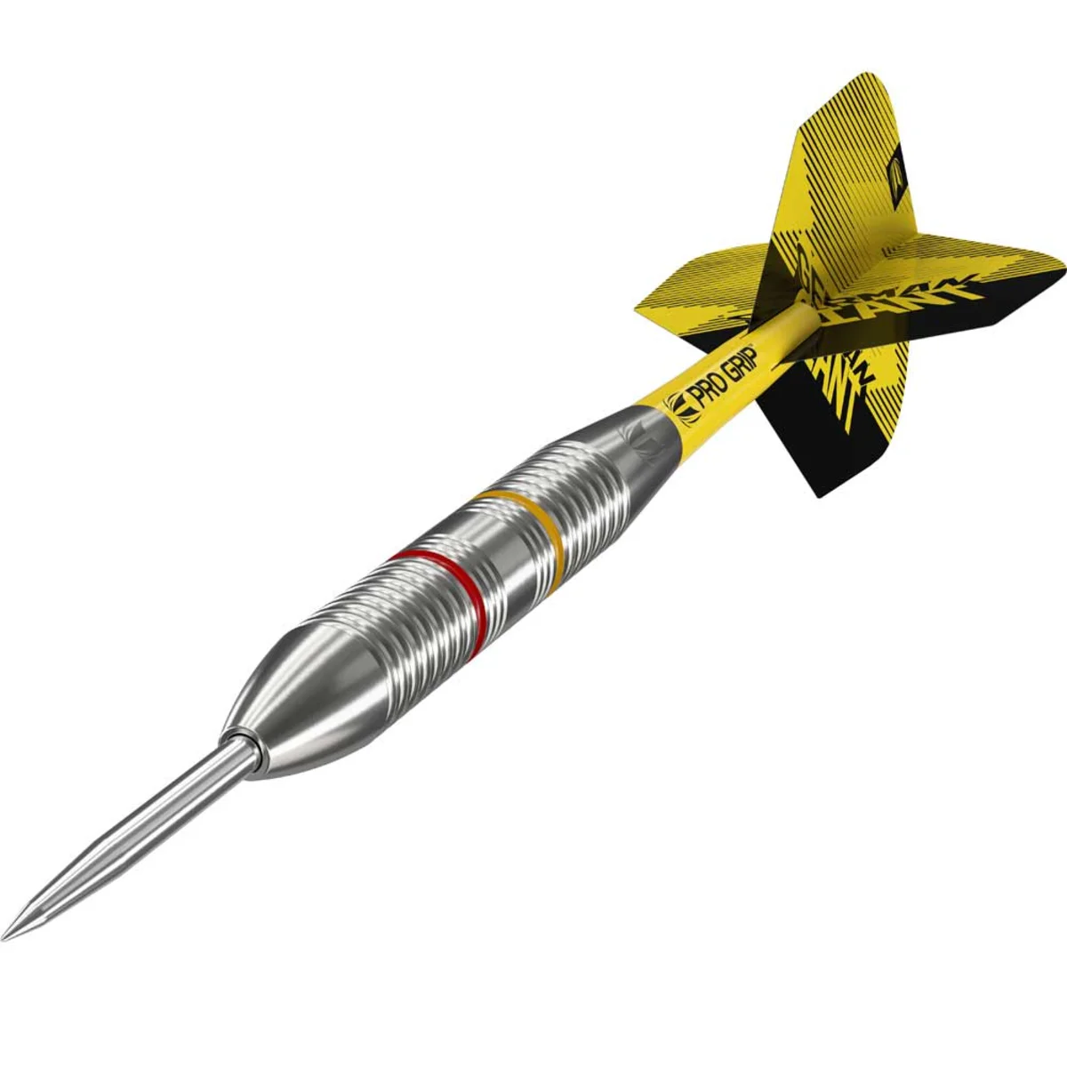 Unterteilt in zwei Bereiche die einmal mit einem roten und mit einem gelben Ring markiert sind. Zusammen mit dem ganzen Equipment sind die Target Gabriel Clemens Brass Steeldarts auch ein ideales Dartgeschenk für Kinder (natürlich nur unter Aufsicht) oder Freizeit und Hobby Dartspieler.