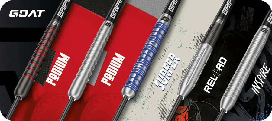 Charakteristisch für GOAT ist die große Bandbreite an Barrelformen und Griffarten. Je nach Modell kommen klassische Ringed Grips, aggressive Shark Grips, feine Micro-Ringstrukturen oder gezielt platzierte Griffmulden zum Einsatz. So entstehen Darts, die sowohl einen sicheren Halt als auch ein sauberes, kontrolliertes Release ermöglichen.