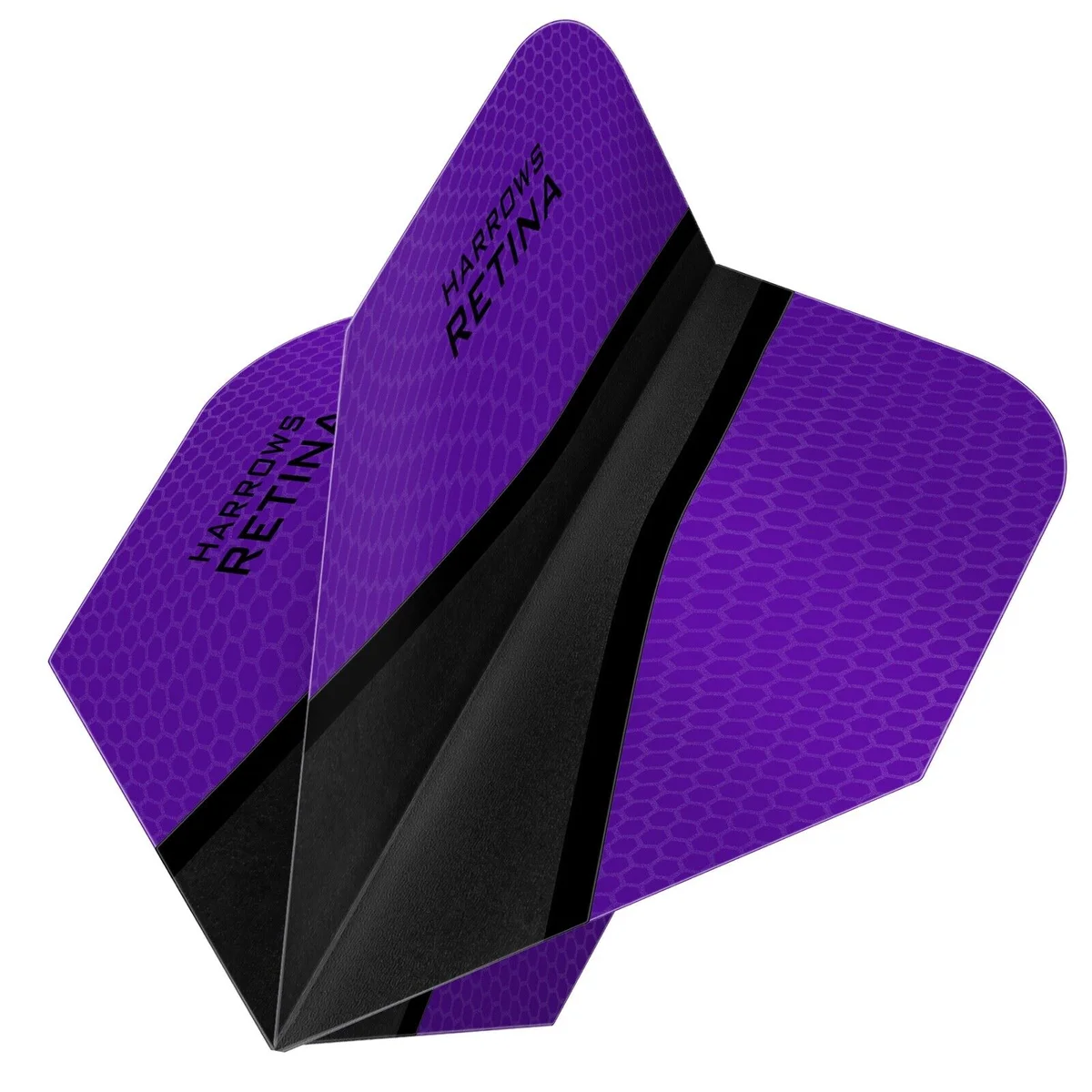 Harrows Retina-X Flights Lila – Präzision und Haltbarkeit in PerfektionErlebe außergewöhnliche Qualität der Harrows Retina Flights lila N°6. Diese schmalen Standard-Flights sind speziell entworfen, um Deine Dart-Performance zu maximieren. Mit einem halbtransparenten Design, das sowohl stilvoll als auch funktional ist, bieten die Lila Harrows Retina X Flights die perfekte Kombination aus Ästhetik und Leistung.Merkmale und Vorteile:Schmale Standard Form N°6: Die schlanke Form sorgt für eine optimale Aerodynamik und reduziert den Luftwiderstand, was zu präziseren Würfen führt.Halbtransparentes Design: Das elegante halbtransparente Design verleiht Deinen Darts einen modernen und ansprechenden Look, ohne dabei auf Funktionalität zu verzichten.Lange Haltbarkeit: Gefertigt aus hochwertigen Materialien, sind die Harrows Retina Flights extrem robust und langlebig. Sie widerstehen selbst intensiven Trainingseinheiten und Wettkämpfen dank einer Materialstärke von 100 Micron.Stabile Flugphase: Die präzise Konstruktion der Flights garantiert eine stabile und gleichmäßige Flugbahn Deiner Darts, was die Treffsicherheit und Konsistenz verbessert.Warum Harrows Retina Flights N°6 wählen?Die Retina Flights N°6 sind die ideale Wahl für Dartspieler, die Wert auf Qualität und Leistung legen. Diese Flights bieten nicht nur eine hervorragende Haltbarkeit, sondern auch eine überlegene Flugstabilität, die Dir hilft, Deine besten Würfe zu erzielen. Egal, ob Du ein professioneller Spieler oder ein ambitionierter Hobby-Darter bist, sie werden Deine Erwartungen übertreffen.