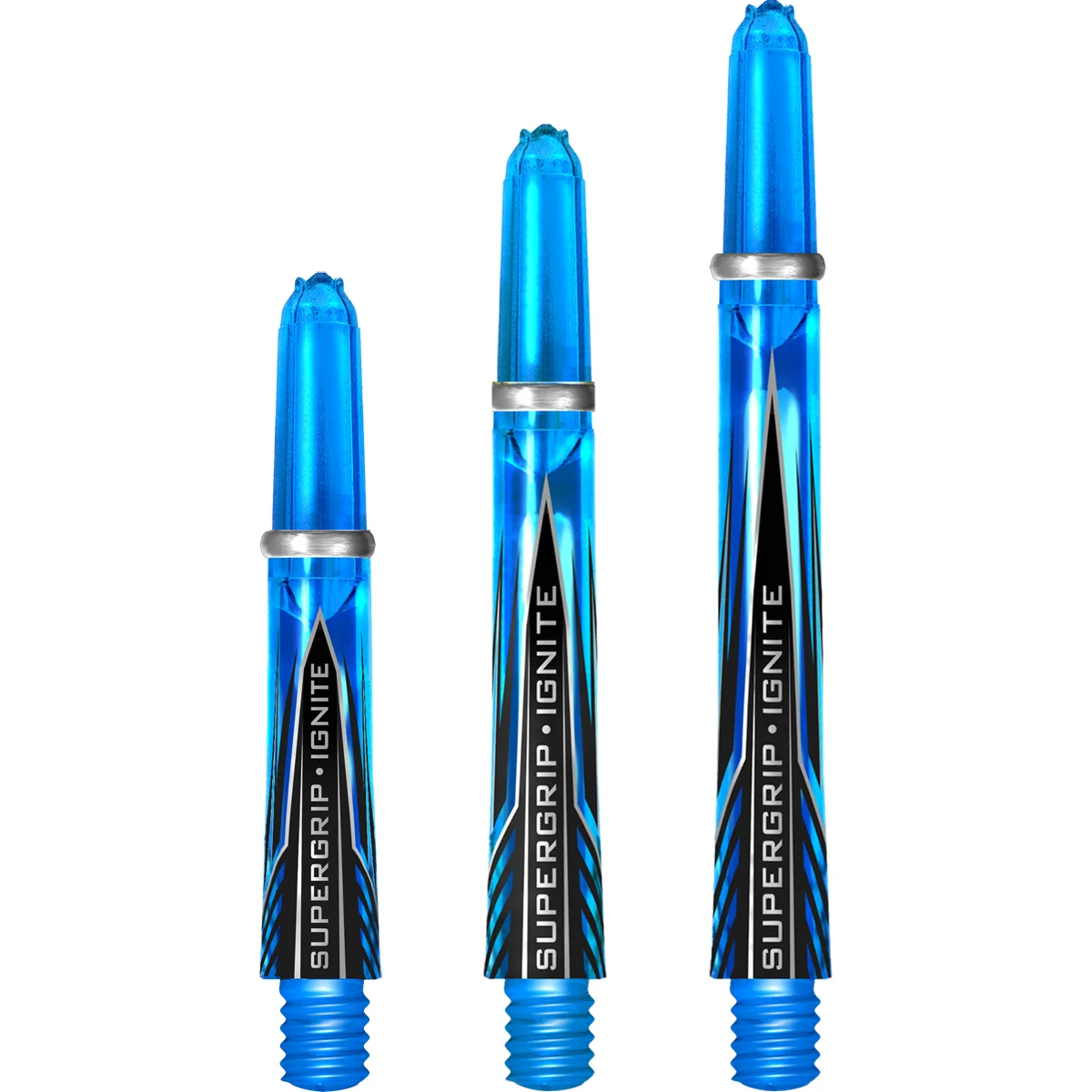 Für den persönlichen Geschmack und Stil gibt es die Supergrip Ignite Shafts in 7 halbtransparenten Farben. Bereits ab Werk ist auf jedem Shaft ein Supergrip-Ring vorinstalliert der als Slot Lock Ring oder einfach so eingesetzt werden kann um den Flights noch mehr Halt zu geben.