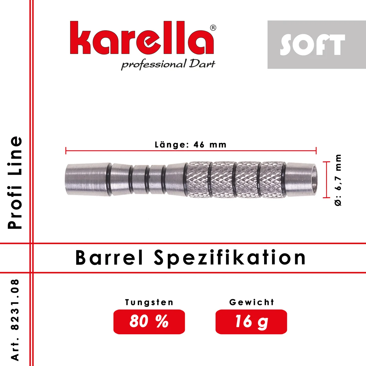 Diese extrem schlanken Barrels mit gerillter oder geriffelter Fräsung werden ausschließlich aus hochwertiger Nickel/Tungsten Legierung hergestellt. Die perfekte Balance aus Gewicht, Länge und Griffigkeit garantiert ein hervorragendes Handling für jeden Wurfstil. Daher sind diese professionellen Barrels vor allem bei Turnierspielern sehr beliebt. Alle Barrels sind mit 2BA (Kleingewinde) ausgestattet.