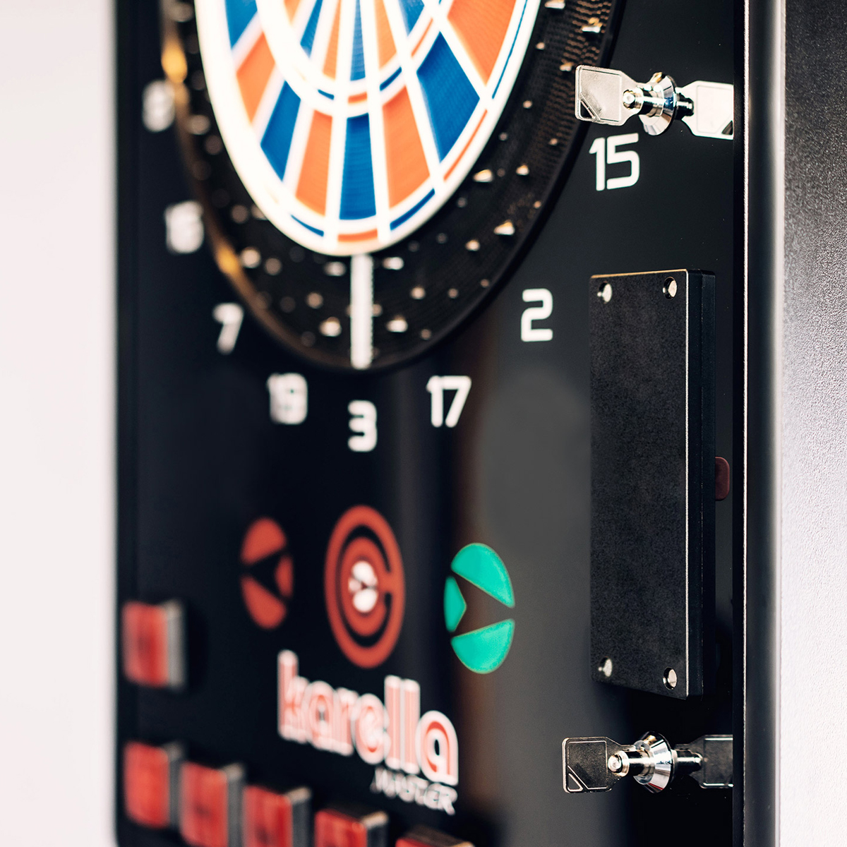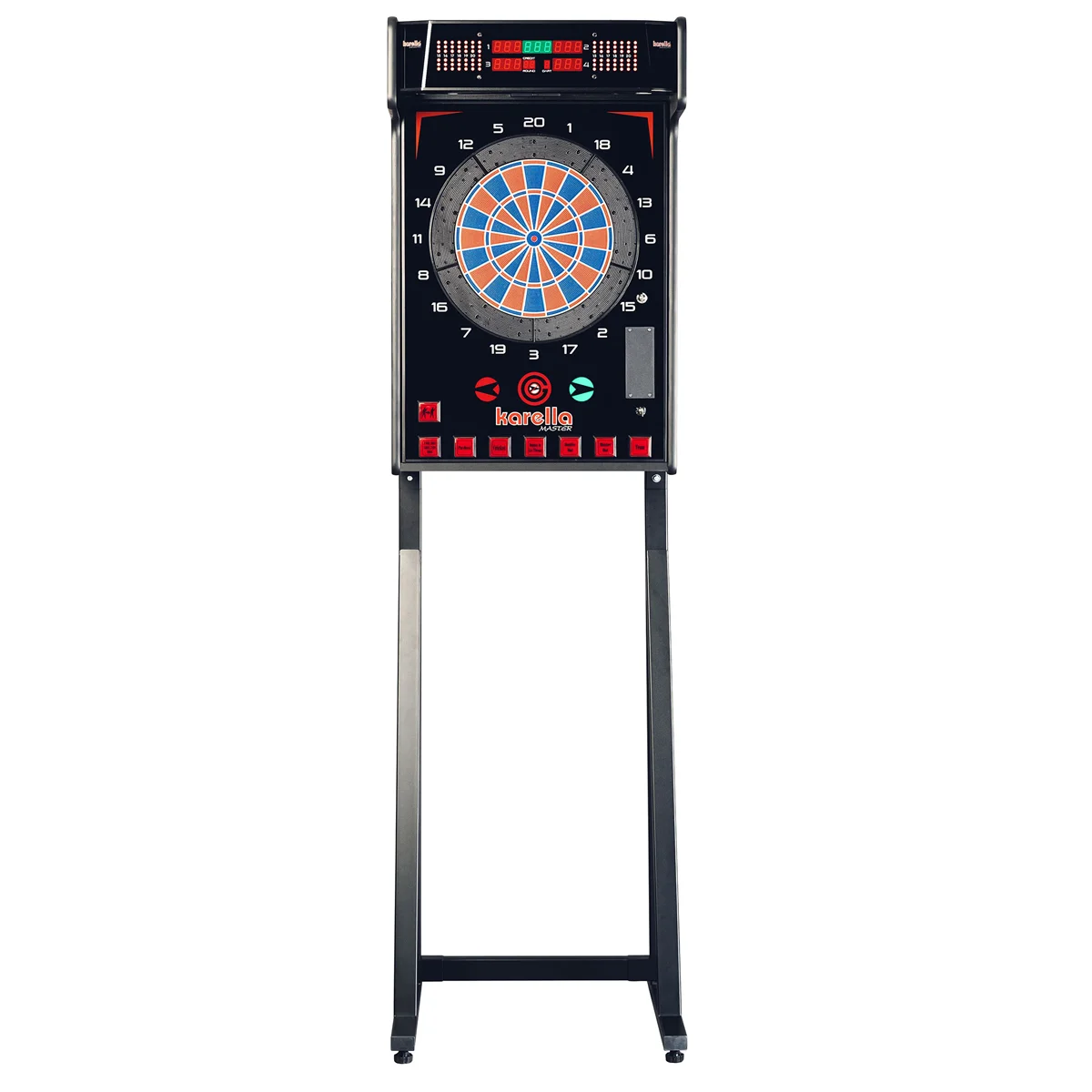 Der Karella E-Master Dartautomat ohne Münzeinwurf und wahlweise Standfuß ist ein vielseitiger und benutzerfreundlicher Dartautomat für den Heimgebrauch oder öffentlichen Bereich wie Jugendherbergen, in der Gastronomie oder Schulen. Mit einer robusten Konstruktion und hochwertigen Materialien bietet er eine lange Lebensdauer. Spieler können ohne Münzen einwerfen zu müssen direkt mit dem Dartspiel beginnen. Der E-Master ist natürlich auch mit Münzeinwurf erhältlich! Der Dartautomat ist wahlweise auch mit einem optionalen Standfuß erhältlich, der eine flexible Aufstellung in verschiedenen Räumlichkeiten ermöglicht.