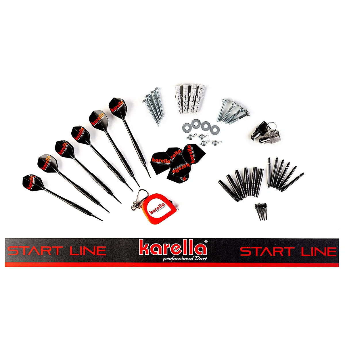 Im Lieferumfang sind eine Abwurflinie, ein Maßband, 6 Darts sowie das Montagematerial enthalten. Anzahl der Spieler: 4 Spiele: 180, 301, 501, 701, 901, Cricket, Parcheesi Spieloptionen: Double In, Double Out, Master Out, Team, Cut Throat