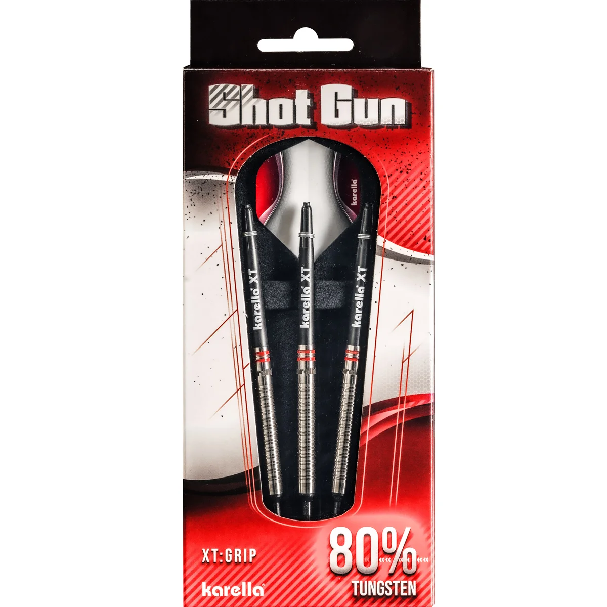 Die Karella Shotgun Softdarts bieten dir ein schlankes, angenehm griffiges 80 % Tungsten-Barrel mit ausgewogener Balance und stabilem Flugverhalten. Das Set vereint ein cleanes, klassisches Design mit solider Materialqualität – ideal für Spieler, die ein zuverlässiges Softdart-Setup für elektronische Boards suchen.