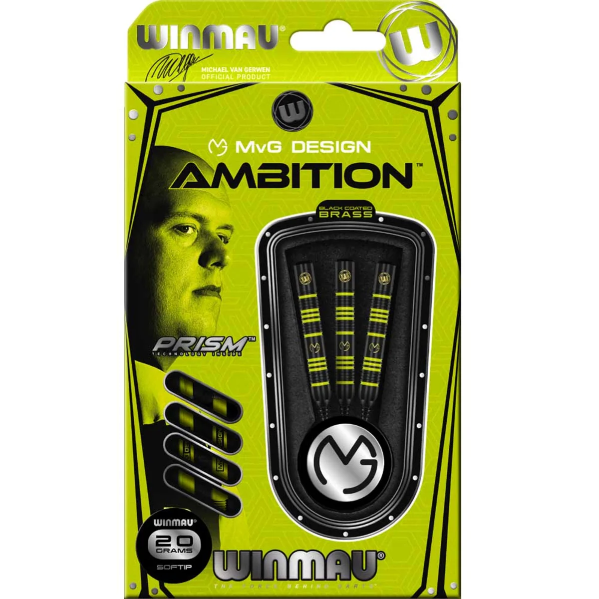 Die Winmau Ambition Softdarts aus der Michael van Gerwen Serie aus schwarz beschichtetem Messing. Das Komplettgewicht dieser mittig ausgewogenen Darts beträgt 20 gramm. Diese Darts für Anfänger und Freizeitspieler sind der ideale Einstieg und ermöglichen von Anfang an pure Spielfreude durch einen tollen Grip und Kontrolle des Dartpfeil.