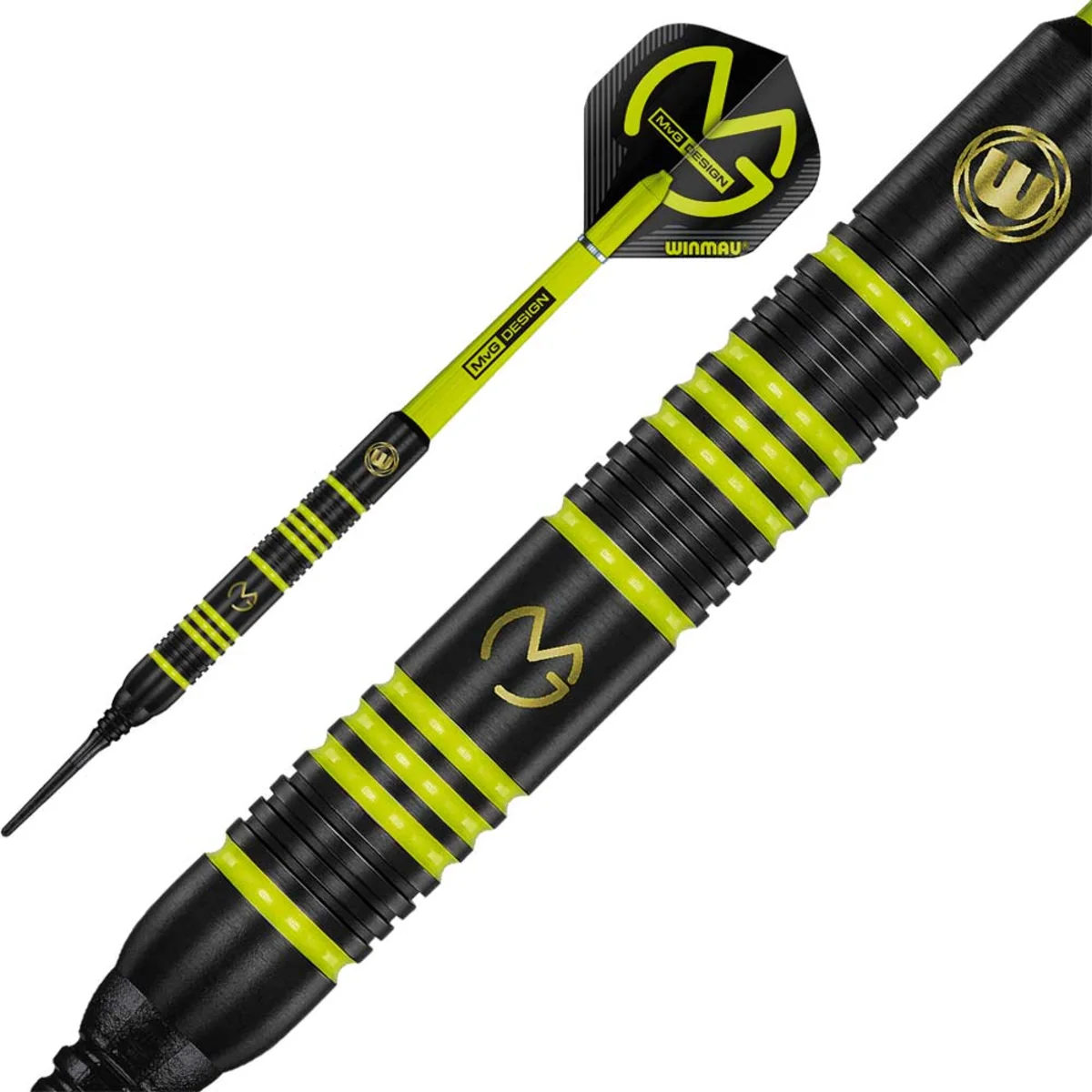 Enthalten sind bereits MvG Design Nylon Shafts und Winmau MvG Mega Flights.