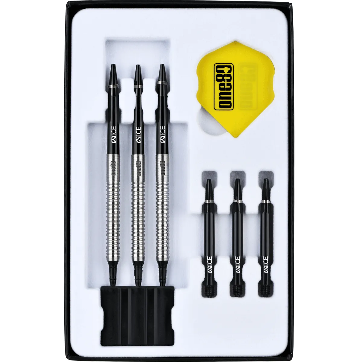 - Zubehör: Geliefert wird das Set mit 6 One80 Vice Shafts und einem Satz One80 Standard Flights, damit du direkt mit dem Spielen beginnen kannst.