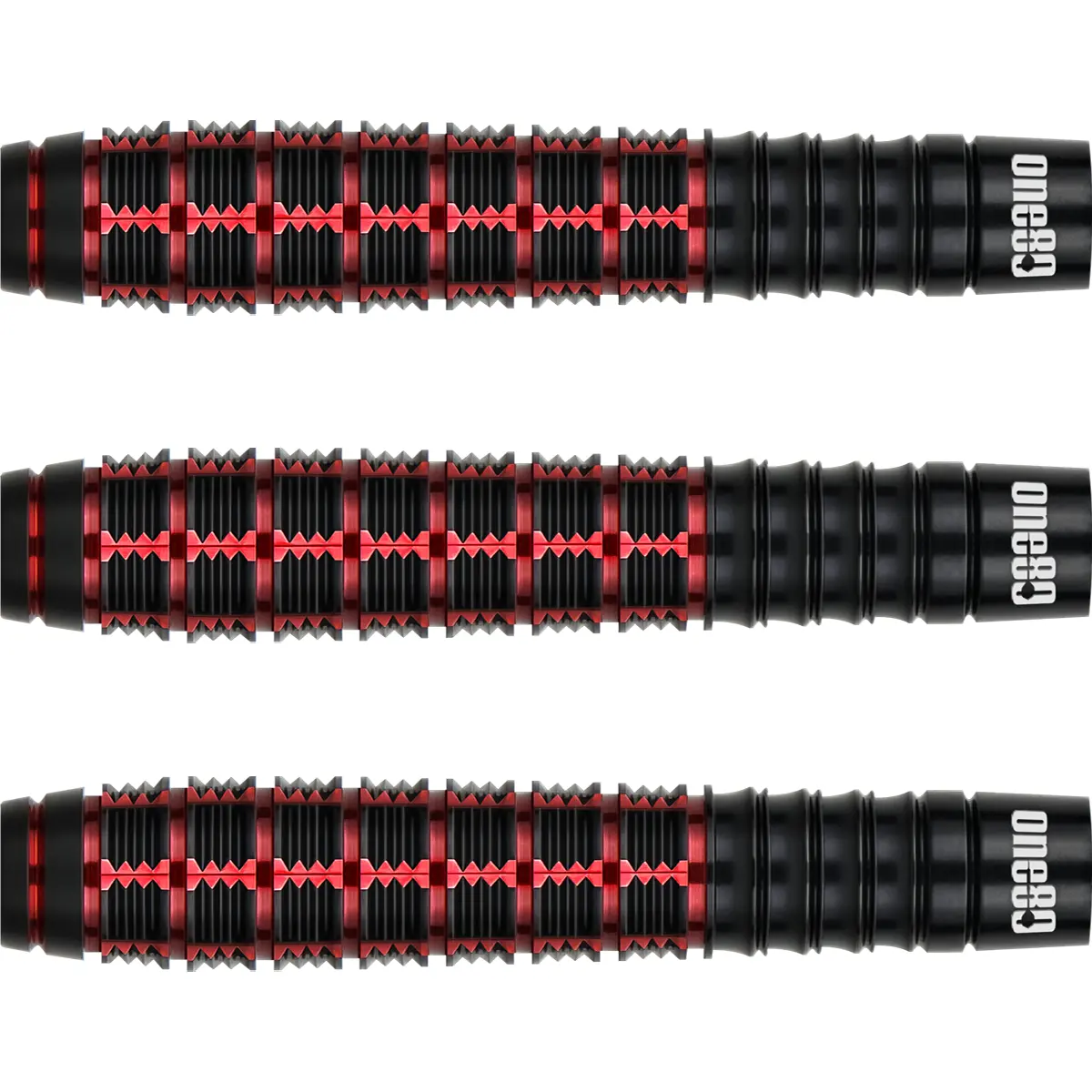Der Barrel besticht durch eine innovative Multi-Grip-Struktur, bestehend aus feiner Ringed-Fräsung, strategisch platzierten axialen Rillen und griffigen Sharkgrip-Abschnitten. Diese einzigartige Textur bietet dir in jeder Wurfphase einen außergewöhnlichen und konsistenten Halt – für maximale Kontrolle und Sicherheit. Das edle Schwarz-Rot-Finish verleiht den Darts zusätzlich einen modernen, professionellen Look.
