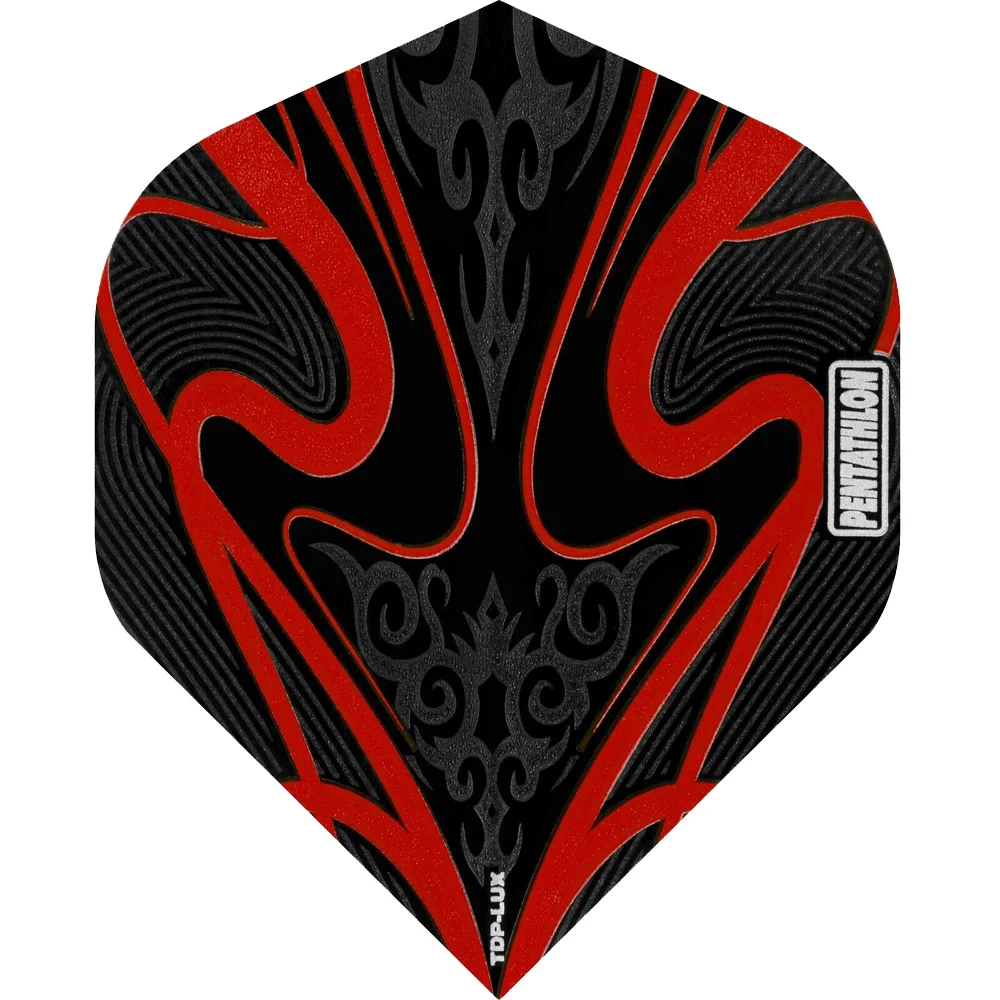 Die neuen Pentathlon Colour Plus Flights haben eine Dicke von 100 Mikron für eine lange Lebensdauer und Haltbarkeit. Die farbigen Flächen im Kern der Pentathlon Flights sind durchsichtig was für einen tollen Effekt sorgt wenn man sie auf farblich passende Shafts steckt. Die Außenseite der Flügel ist schwarz mit einem halbtransparenten Tribal Muster das die Optik noch zusätzlich aufwertet. Die Flights von Pentathlon sind problemlos lochbar für bevorzugte Slot Lock Systeme und passen natürlich auf alle gängigen Nylon und Alu Shafts.Gewohnte Pentathlon Qualität zu einem attraktiven Preis.frische Farben100 Micron stark Standard Form sehr stabil und langlebig