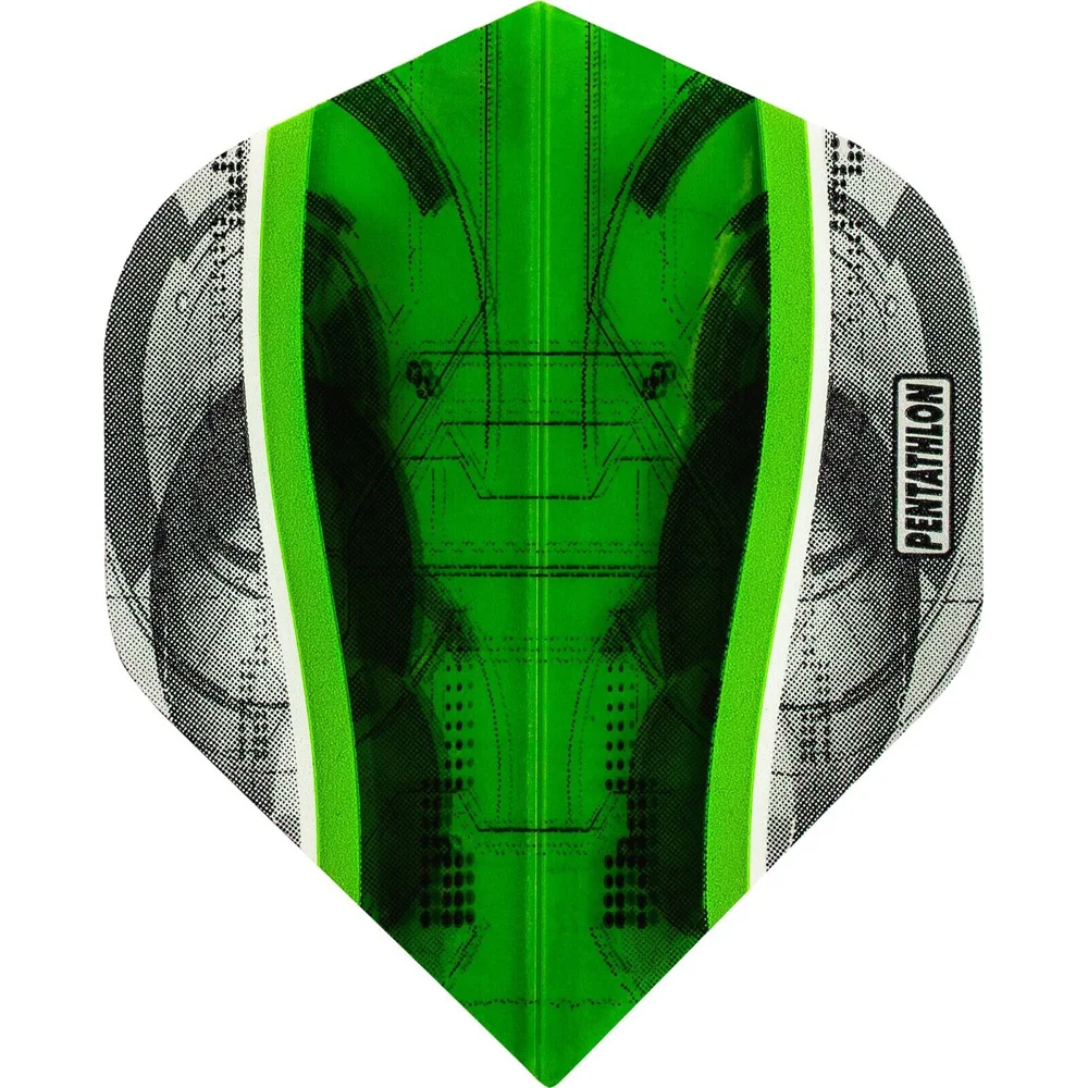 Neue Serie aus der Flights - Schmiede Pentathlon in der beliebten Standard Flightform. Schönes Design mit einem farbig-transparenten Kern und sibernen Außenseiten. 100 Mikron Stärke sorgen für lange Lebensdauer und eine stabile Flugbahn des Darts.