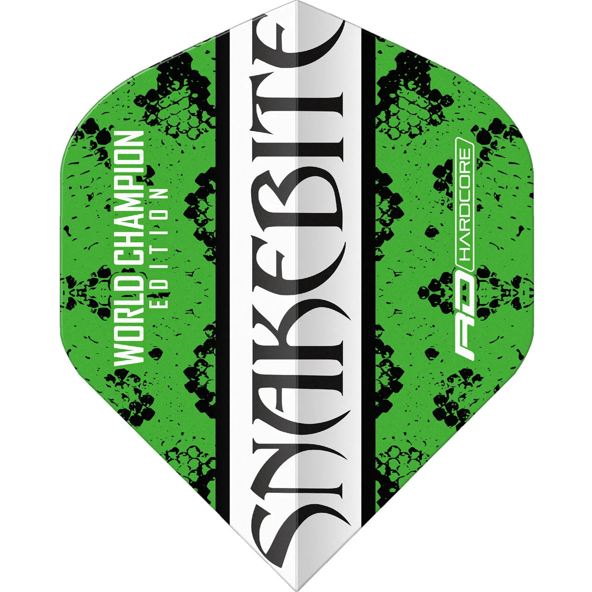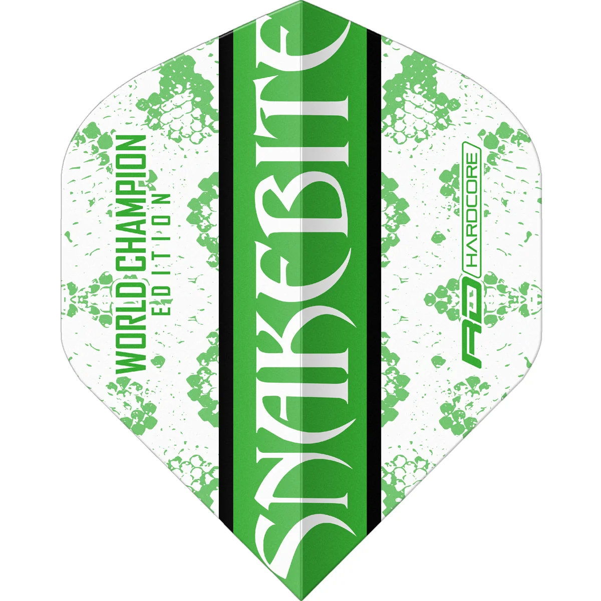 100 Micron starke Peter Wright Ying & Yang Flights in Standard Form. Hochwertige Red Dragon Flights im doppelseitigen, Snakebite Design Grün und weiß.