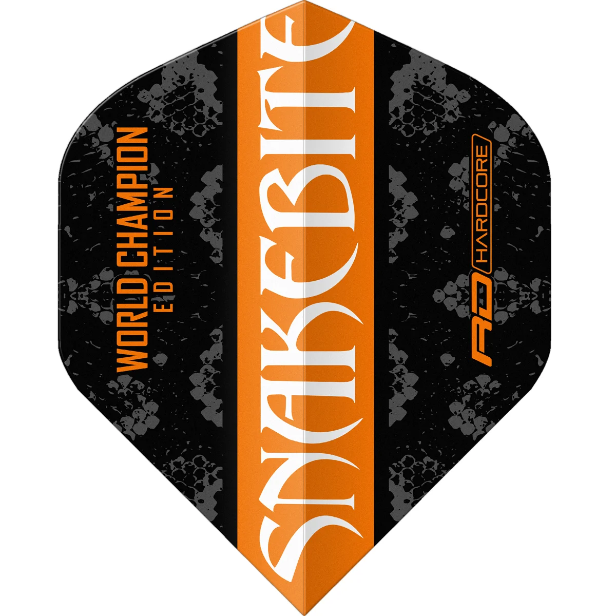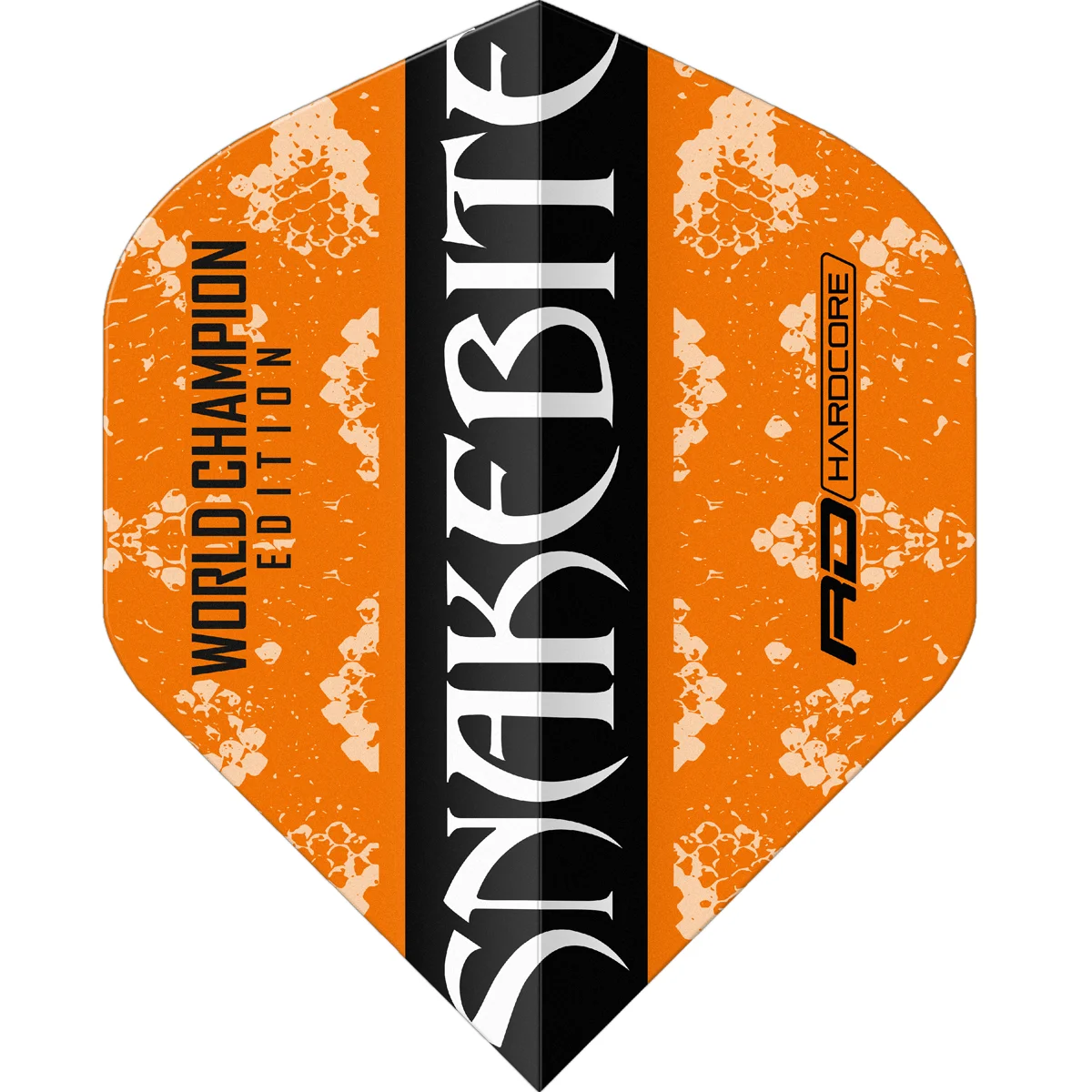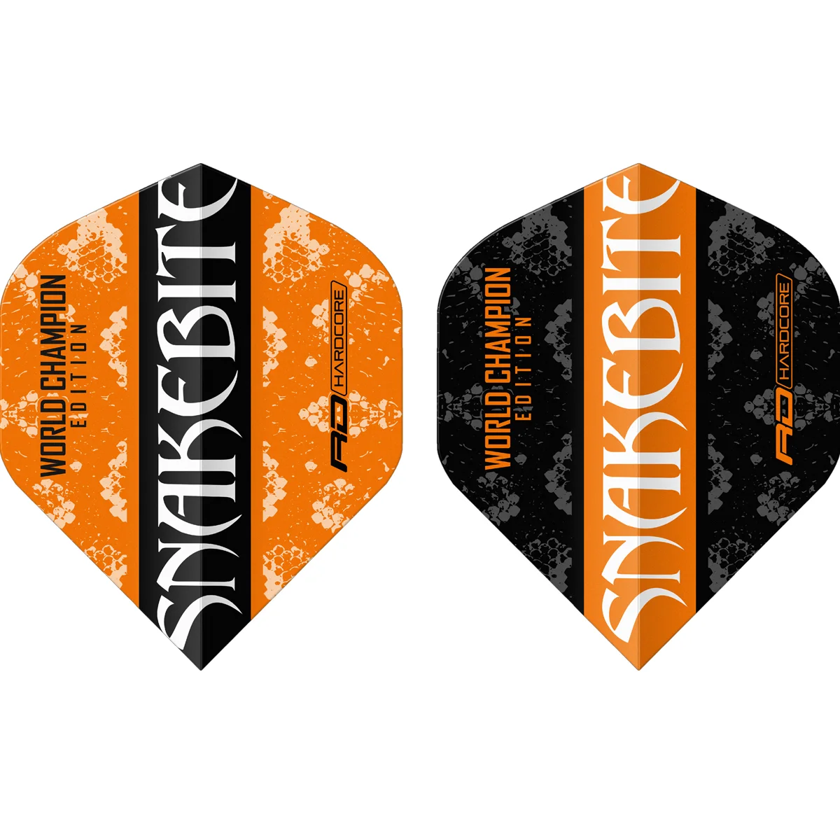 100 Micron starke Peter Wright Ying & Yang Flights in Standard Form. Hochwertige Red Dragon Flights im doppelseitigen, Snakebite Design orange und schwarz.