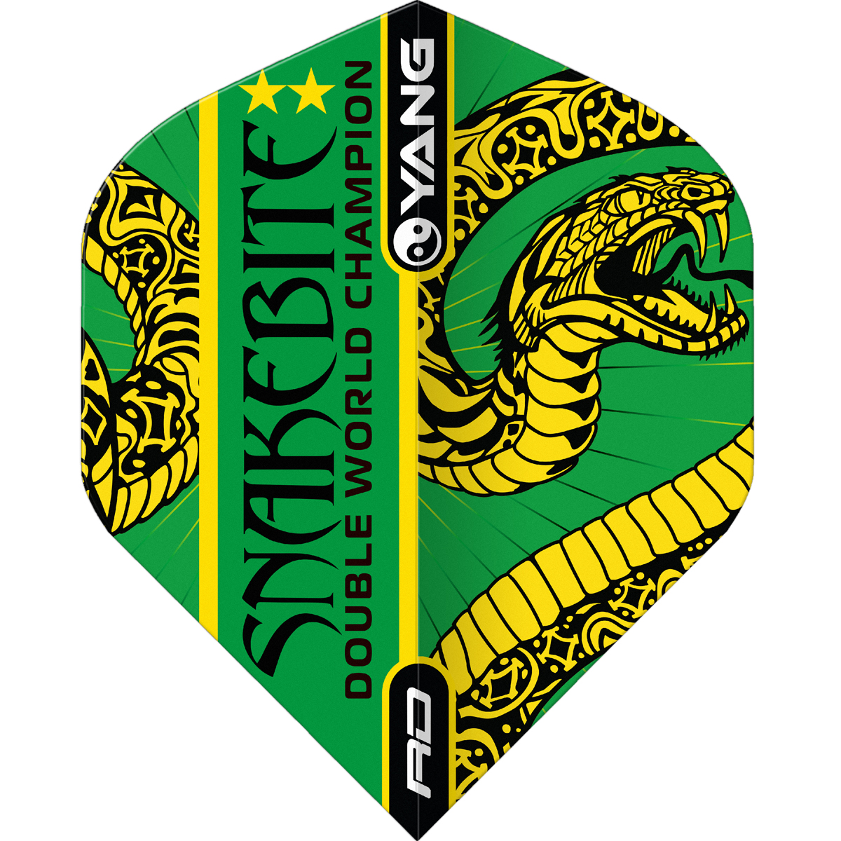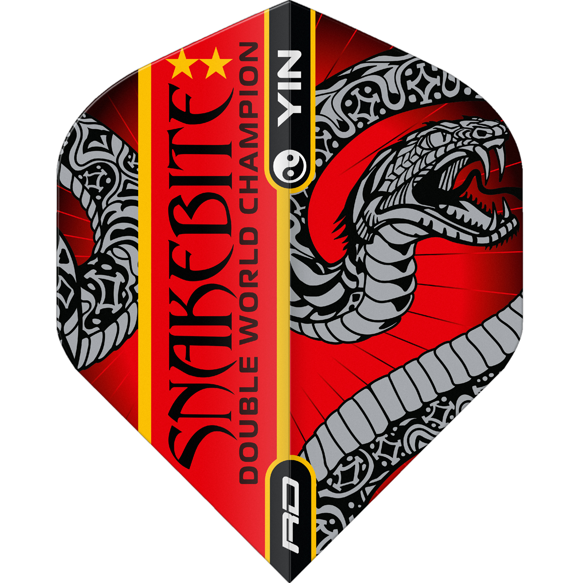 100 Micron starke Peter Wright Ying & Yang Flights in Standard Form. Hochwertige Red Dragon Flights im doppelseitigen, Snakebite Design Rot und Grün.