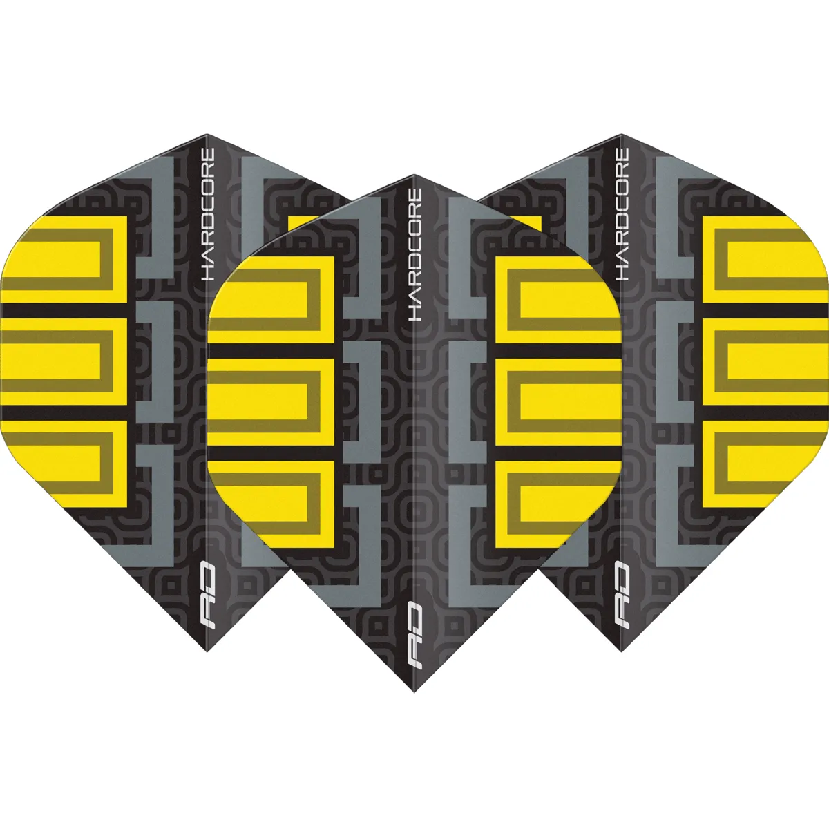 Die Red Dragon Hardcore Radical Blocks Flights in Black-Yellow vereinen Langlebigkeit mit einem modernen Look. Die 100 Mikron Materialstärke sorgt für hohe Widerstandsfähigkeit und optimale Flugstabilität – ideal für präzise Würfe.
