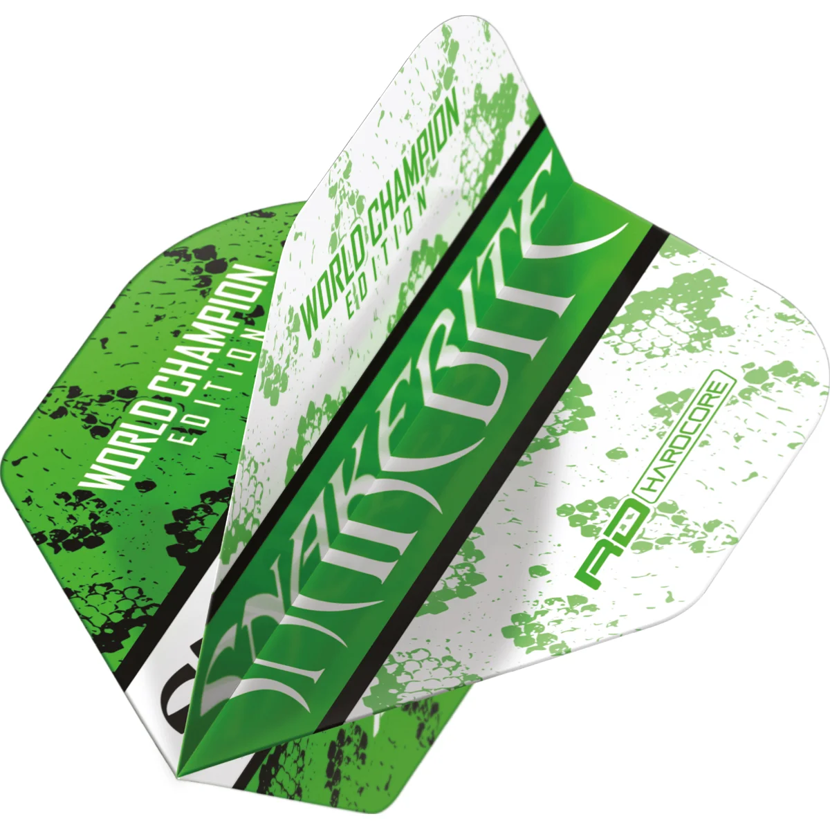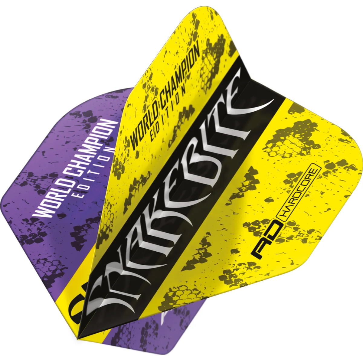 Die RedDragon Hardcore Peter Wright Double World Champion Flights haben eine Materialstärke von 100 Mikron und werden in der sehr beliebten Standard Flightform hergestellt. Ganz im Zeichen des zweiten PDC World Champion Titels erstrahlen diese hochwertigen und langlebigen Dartflights in 5 stilvollen und eleganten Designs. 2 Sterne für die beiden gewonnenen Darts Weltmeisterschaften und sind auf jedem der Modelle vertreten. Peter Wright Spielerflights RedDragon Hardcore Serie 100 Mikron stark Standard Form N°2
