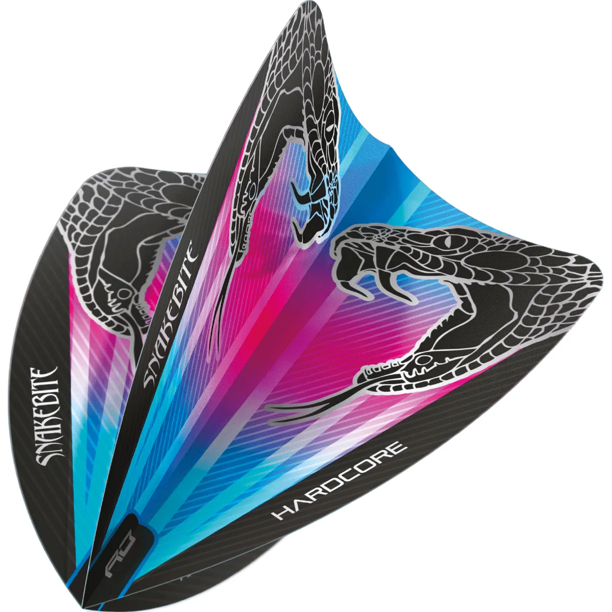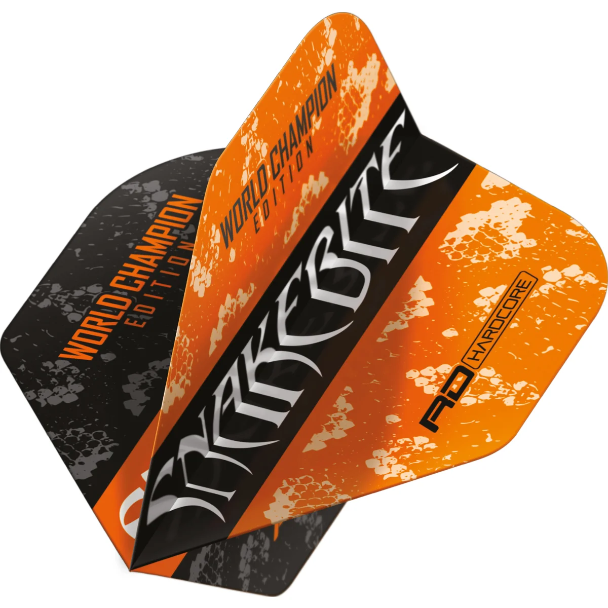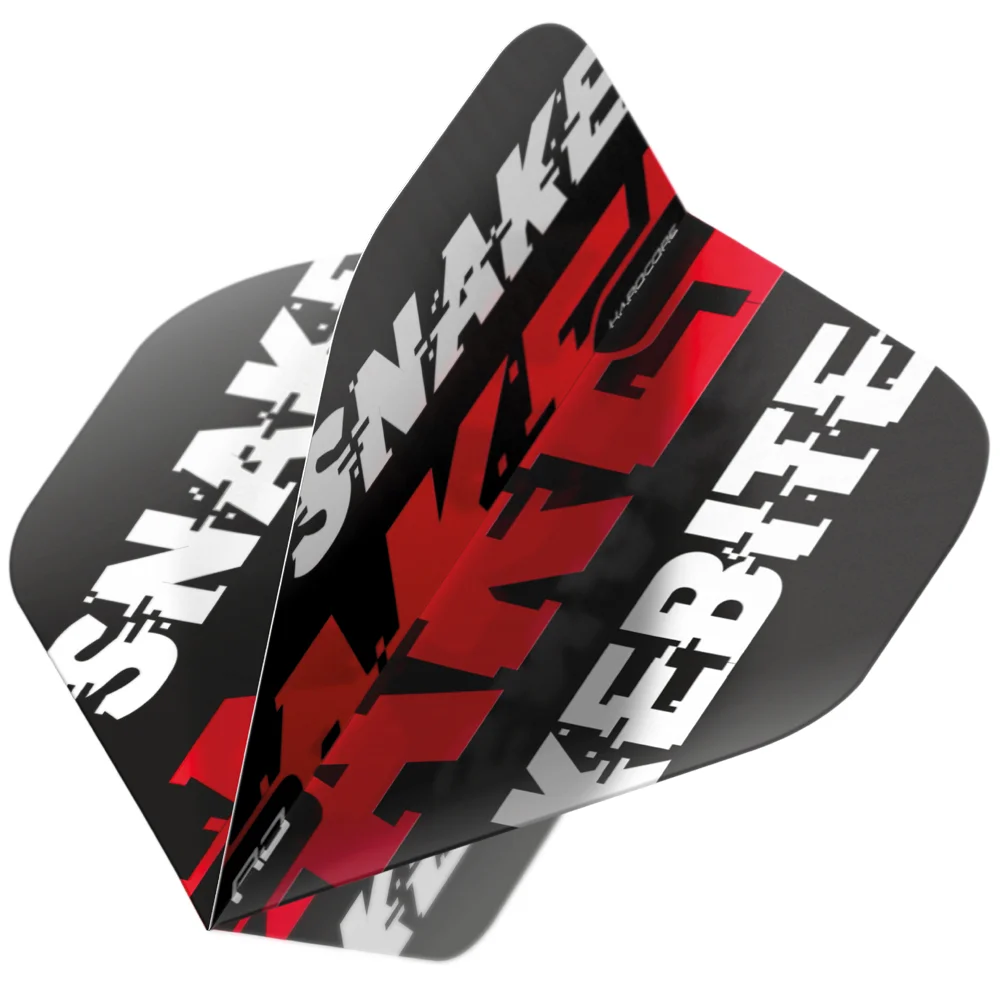Red Dragon Peter Wright Hardcore Flights mit einer Stärke von 100 Mikron die den Snkabeite Schriftzug schön in Szene setzen und mit kräftigen Farben richtig auffallen. Gewohnte Qualität von Red Dragon Darts für eine lange Spielfreude und stabile Flugphasen der Darts.