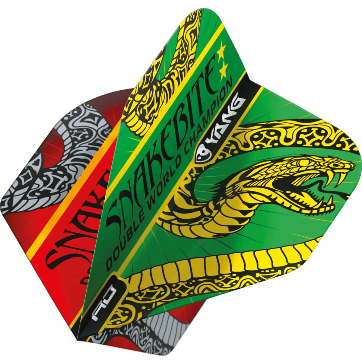 Red Dragon Peter Wright Ionic Flights mit einer Stärke von 100 Mikron die das Snkabeite Schlangenlogo schön in Szene setzen und mit kräftigen Farben richtig auffallen. Gewohnte Qualität von Red Dragon Darts für eine lange Spielfreude und stabile Flugphasen der Darts.