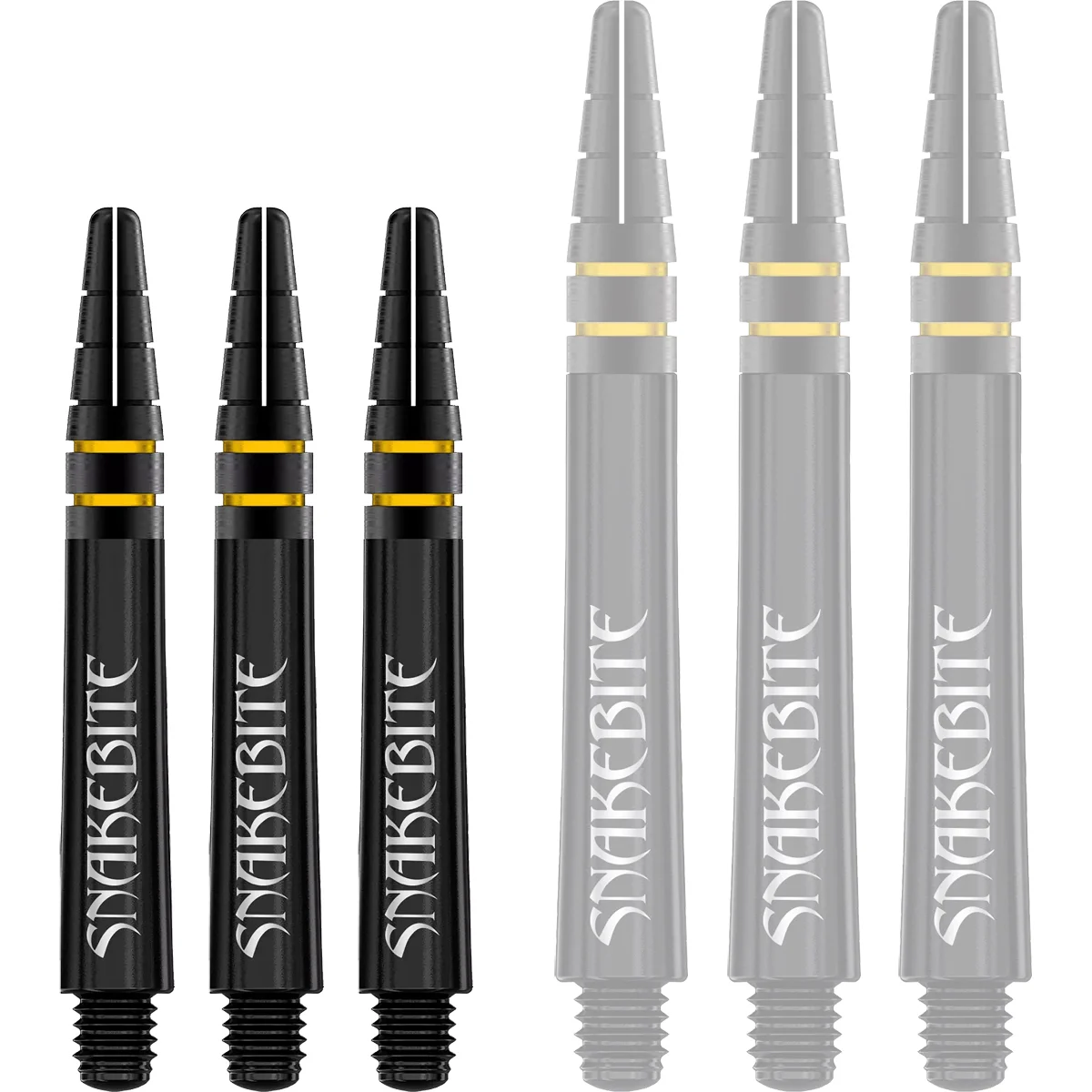 Da präzise gefertige 2BA Gewinde der Peter Wright Dartshafts stabilisiert die Shafts um Barrel um ebenfalls ein lösen zu verringen. Das schwarze Unterteil ist mit dem Red Dragon Nitro Tech Schriftzug und dem Snakebite Schriftzug versehen. Erhältlich sind sie in den Längen short mit 36mm und medium mit 42mm. Beide Längenangaben sind ohne Gewinde gemessen.