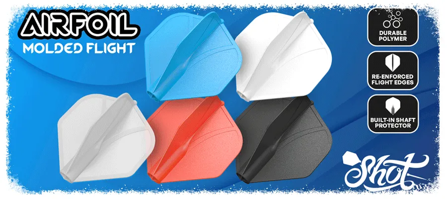 Der optimale 90-Grad-Flugwinkel der Shot Airfoil Flights transparent bleibt bei jedem Wurf erhalten. Hergestellt aus einem fortschrittlichen kompositen Polymer, sind diese neuen One-Piece Flights flexibel, aber auch widerstandsfähig gegenüber den intensivsten Dartspielen. Strategisch verstärkt mit integrierten Rippen, entwickelt, um die Steifigkeit um 40% zu erhöhen bei nur einem 3%-igen Anstieg des Materials – was Stabilität ohne zusätzliches Gewicht bietet. Ausgestattet mit eingebauten Flight- und Shaftschutz und kompatibel mit allen Dart-Shafts.Hauptmerkmale Material: Hergestellt aus fortschrittlichem Verbundpolymer für Langlebigkeit und Flexibilität. Design: Einteilige Formkonstruktion mit präzisem 90-Grad-Flugwinkel für gleichmäßige Würfe. Leistung: Integrierte Adern erhöhen die Steifigkeit um 40 % bei minimalem Materialaufwand und bieten Stabilität ohne zusätzliches Gewicht. Schutz: Integrierter Flight- und Schaftschutz erhöht die Haltbarkeit und reduziert den Verschleiß. Kompatibilität: Universelle Passform, kompatibel mit allen Dartschäften für eine einfache Integration in Ihr Setup.Flightform: Standard Flightform No2 für optimale Stabilität und Aerodynamik während des Flug.Farben: erhältlich in den Farben schwarz, blau, rot, weiß und transparent