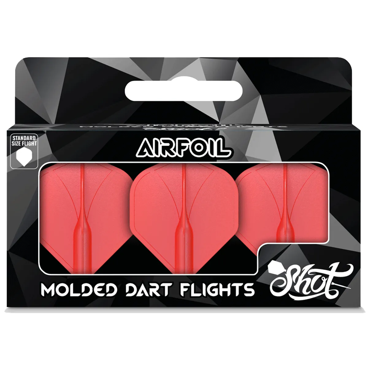 Der optimale 90-Grad-Flugwinkel der Shot Airfoil Flights rot bleibt bei jedem Wurf erhalten. Hergestellt aus einem fortschrittlichen kompositen Polymer, sind diese neuen One-Piece Flights flexibel, aber auch widerstandsfähig gegenüber den intensivsten Dartspielen.