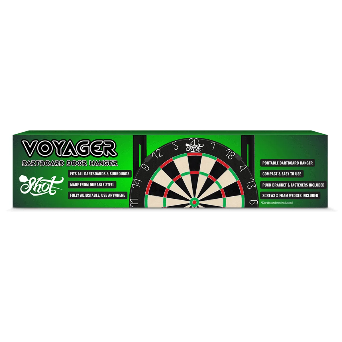 1× Shot Voyager Türaufhängung inklusive Montagematerial und Anleitung für den schnellen Aufbau. Dartscheibe nicht im Lieferumfang enthalten.