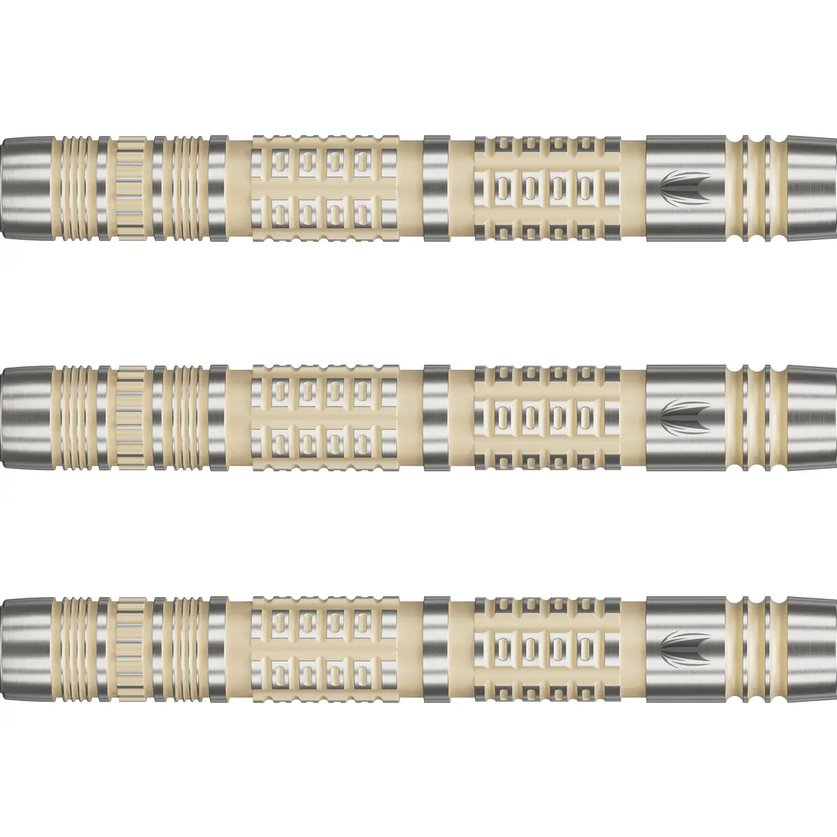 Die neuen Chris Dobey Action Softdarts von Target, sind mit einem raffiniert, neuartigen Ringgrip auf dem gerade verlaufenden 90% Tungsten Barrel ausgestattet. Das Target Darts Logo wurde in den vorderen Bereich des Darts versetzt um eine sehr große Fläche für den Grip nach hinten zu schaffen. Das herausragende Merkmal dieses Softdarts von Chris Dobey ist der durchgängige Grip bis zum Shaft, was vor allem Spielern zugutekommt, die den Dart weit hinten halten. Durch die große Gripfläche bieten sich viele Griffoptionen an, je nach persönlichem Stil. Die Target Chris Dobey Action Softdartpfeile sind mit einem Gesamtgewicht von 20 Gramm erhältlich. Das reine Barrelgewicht ohne Spitze, Shaft und Flight liegt ca. zwei Gramm darunter. Im Lieferumfang dieser hochwertigen Spielerdarts findest Du neben den präzise hergestellten Dartpfeilen jeweils einen Satz Target Shafts und Spielerflights von Chris Dobey. Perfekte Kombination aus Qualität, Funktionalität und Stil für Dein Dartspiel mit dem Chris Dobey Action Softdart von Target.GewichtBarrellängeDurchmesser20g50,1mm6,3mm