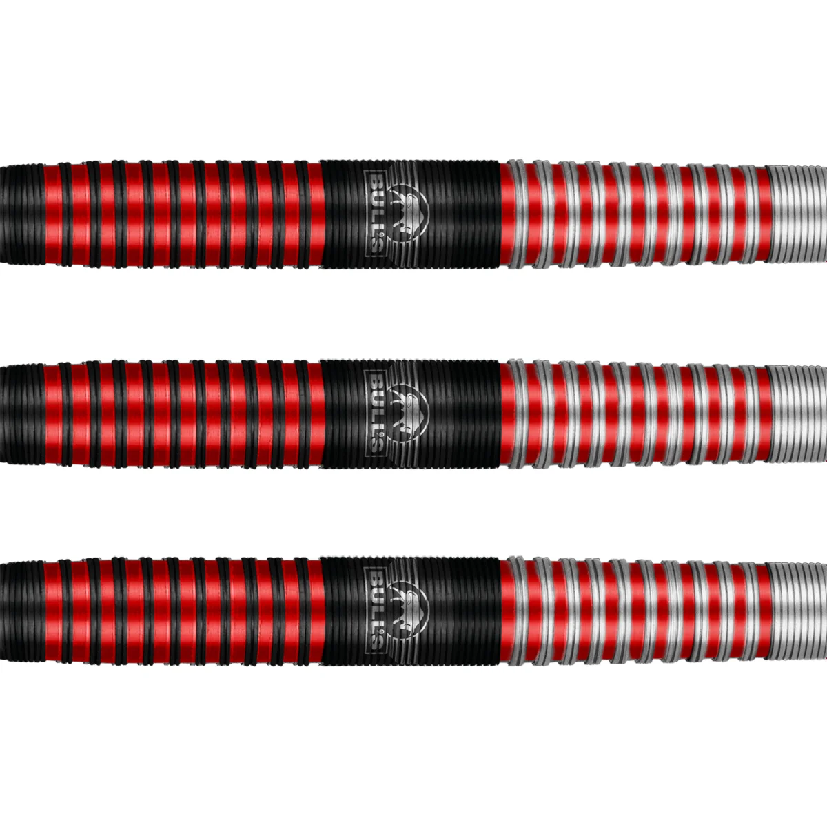 Entdecke die Bull's NL Smoke Red Softdarts - die perfekte Wahl für geübte Dartspieler, die einen enormen Grip schätzen. Mit einem Gewicht von 18 Gramm und einem beeindruckenden Tungsten-Anteil von 90% bieten diese Darts eine erstklassige Balance und Präzision. Die Darts haben ihren Schwerpunkt im vorderen Bereich an dem sie auch dicker sind bevor sie zur Dartspitze wieder dünner werden. Sehr griffig durch breite Vertiefungen im mittleren Teil bevor der Ringed Grip nach hinten enger platziert ist. Vorne sind die Smoke Red A Softdarts ebenfalls geringt und zusätzlich der Länge nach noch versetzt bearbeitet. Ein Dart der ein breites Spektrum verschiedener Wurftypen und Griffhaltungen abdeckt in besonders elegantem Look.Der einzigartige Smoke Red-Look verleiht den Darts nicht nur einen attraktiven Stil, sondern der starke Grip sorgt auch für eine sichere und stabile Handhabung. Dank dieser außergewöhnlichen Eigenschaften kannst Du Deine Wurfkontrolle verbessern und Deine Gegner am Dartboard beeindrucken. Hol Dir die Bull's NL Smoke Red Softdarts und hebe Dein Dartspiel auf ein neues Niveau!GewichtBarrellängeDurchmesser18g46mm6,48mm