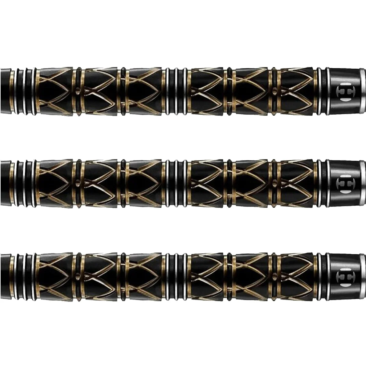 Die neuen Harrows Taipan Softdarts wurden in einem aufwendigen Verfahren entwickelt und für höchste Ansprüche designt wie man bei diesen wunderschönen, 90% Tungsten Barrels, unschwer erkennen kann. Um einen optimalen Grip, vereint mit außergewöhnlichem Design, zu erreichen wurden aufwendige Bearbeitungstechniken an den besten CNC Maschinen angewandt. Die Barrels der Harrows Taipan Softdarts verlaufen gerade und haben einen mittig liegenden Schwerpunkt. Die schwarze Titanium Beschichtung schützt die Darts vor Beschädigungen und zu schneller Abnutzung. Die Metallische Goldbeschichtung veredelt dieses ganz besondere Dartset zusätzlich. Zusammen mit den Supergrip Carbon Shafts und neuen Taipan Flights sind diese traumhaften Darts komplett.GewichtBarrellängeDurchmesser18g47mm6,4mm20g47mm6,6mm21g47mm6,7mm
