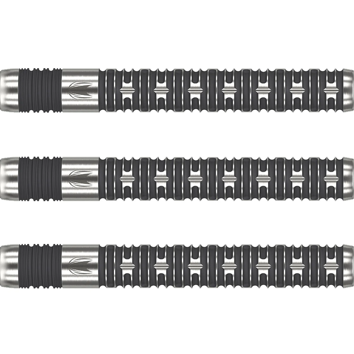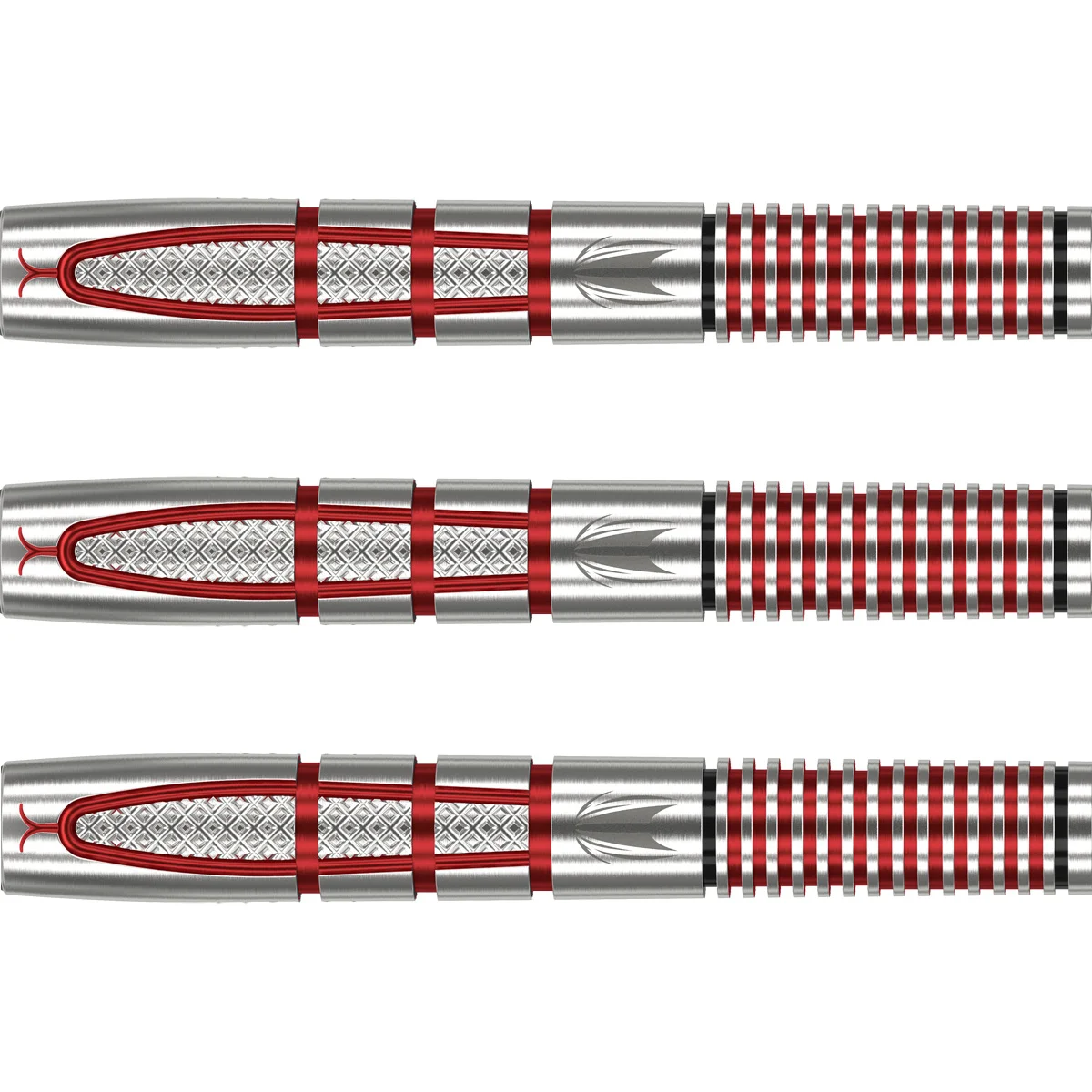 Die Nathan Aspinall Generation 2 Darts wurden in Zusammenarbeit mit dem Matchplay Champion 2023 entwickelt, um die Dart-Performance zu optimieren. Diese hochpräzisen Darts bestehen aus 95% Wolfram und bieten perfekte Gewichtsverteilung und Balance. Das Barrel zeichnet sich durch mehrere Griffprofile aus, die ein ausgeglichenes Spielgefühl ermöglichen. An der Vorderseite des Barrels finden sich CNC-gefräste Querschnitte, die von natürlichen und radialen Rillen getrennt sind, wobei eine Anspielung auf "The Asp" an der Spitze des Barrels zu finden ist. Der Griffbereich geht dann in eine klassische radiale Rille am hinteren Ende über, was ein konsistentes Gefühl gewährleistet. Die rote PVD-Performance-Beschichtung in den Rillen bietet zusätzlichen Grip und Textur. Das Barrel wird schließlich mit Target Pro Grip Shafts, schwarzen Pixel - Dartspitzen und Aspinall Edition Flights komplettiert. Diese Darts sind perfekt ausbalanciert und bieten eine herausragende Präzision für dein Dartspiel. Steigere deine Performance mit den Nathan Aspinall Generation 2 Softdarts.GewichtBarrellängeDurchmesser18g46mm6,3mm