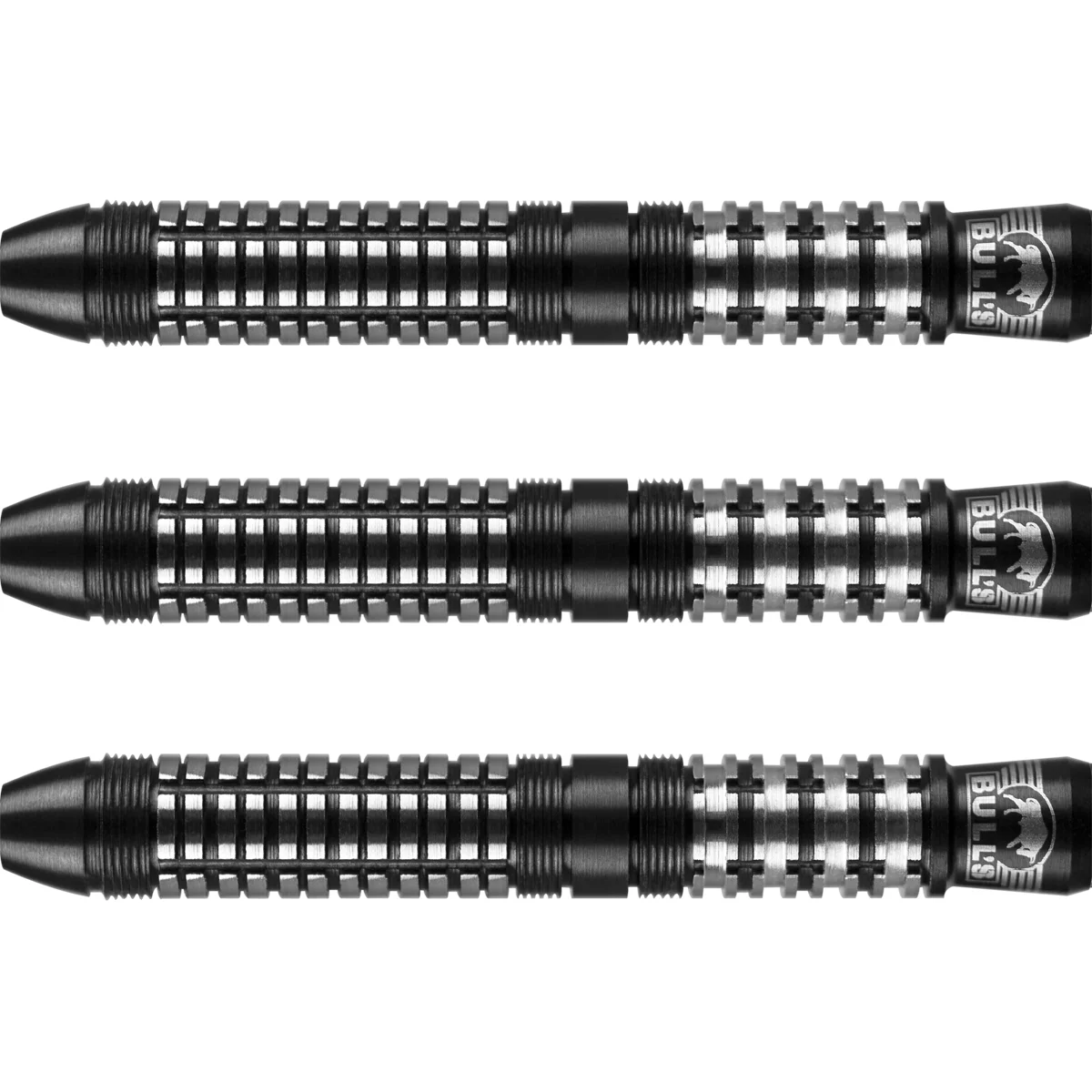 Die Luna Neoma Steeldarts von Bull´s NL haben einen gerade verlaufenden, 90% Tungsten Barrel der über drei unterschiedliche Griparten verfügt um einem breiten Spektrum von unterschiedlichen Spielertypen einen ganz besonders griffigen und hochwertigen Dart zu bieten.Die beiden großen Gripflächen am vorderen und hinteren Bereich dieser professionellen Steeldart Pfeile werden von zwei enge platzierten Ringed Grip Zonen unterteilt und geben dem Spieler einen zusätzlichen Orientierungspunkt beim Greifen.Die zeitlose Kombination aus schwarz mit silbernen Highlights verleiht den Bull´s NL Luna Neoma Steeldarts ein besonders elegantes und abgerundetes Design. Neben den präzise gefertigten Dart Barrels sind in diesem Steel Dartset 3 Flights in Standard Form sowie 3 schwarze Nylon Shafts mit Federring enthalten. Erhältlich mit einem Barrelgewicht von 23 oder 24 Gramm.GewichtBarrellängeDurchmesser23g51,2mm6,63mm24g51,2mm6,75mm