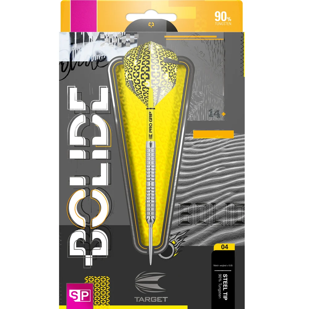 Die Bolide Darts von Target werden zusammen mit den gleichnamigen Flights in N°6 Form und Pro Grip Dartshafts geliefert, bereit für erstklassige Dart-Erlebnisse.