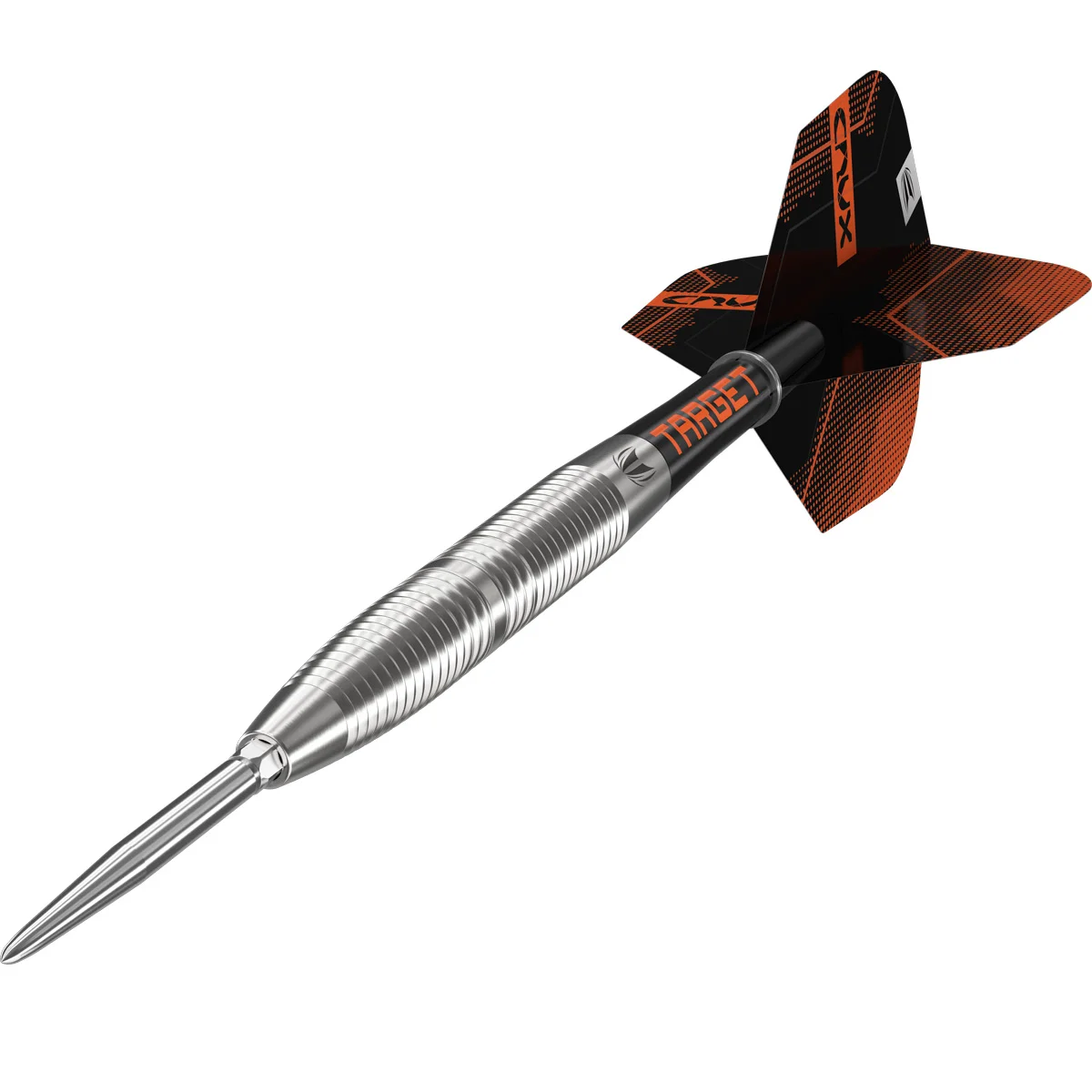 Das Barrel verjüngt sich nach vorne hin und bietet verschiedene Gripbereiche mit scharfem Ringgrip. Diese Kombination aus schlankem Barrel und vielseitigem Grip ist für viele Spieler geeignet. Die Target Crux 02 Steeldarts sind in den Gewichten 21, 23 und 25 Gramm erhältlich, wobei das Gesamtgewicht inklusive Spitze, Shaft und Flight etwa zwei Gramm höher liegt.