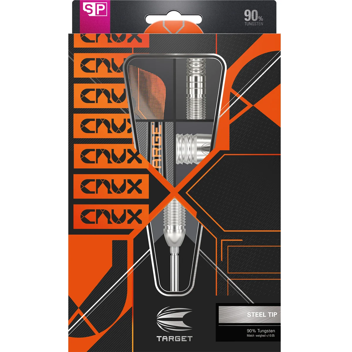 Die Target Crux 02 Steeldarts präsentieren ein schlank zulaufendes Barrel aus hochwertigem 90% Tungsten und das patentierte Swiss Point System. Mit ihrem ausgezeichneten Grip, hohem Tungstengehalt und attraktivem Preis-Leistungs-Verhältnis sind diese Darts ein wahrer Blickfang.