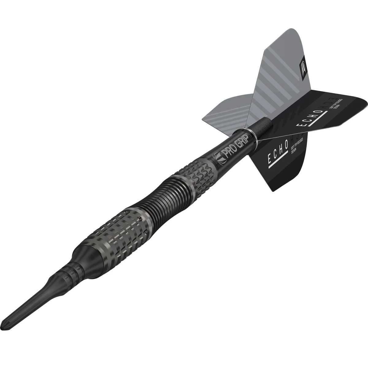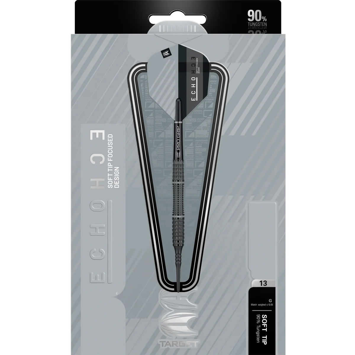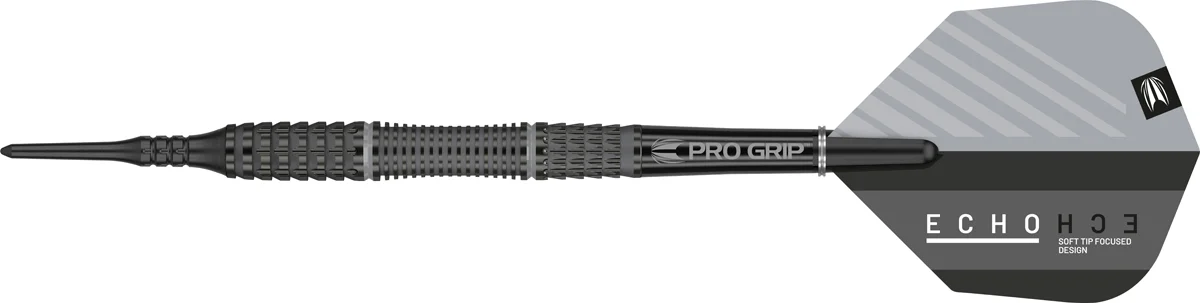Die Version Echo 13 ist in drei Gripzonen unterteilt und ist ein Dart mit Griffmulde welche einen Ringed Grip erhalten hat. Der vordere und hintere Bereich dieser Softdarts überzeugt durch einen Shark Grip der sogar der Länge nach noch bearbeitet wurde und eine Axial Fräsung aufweist.