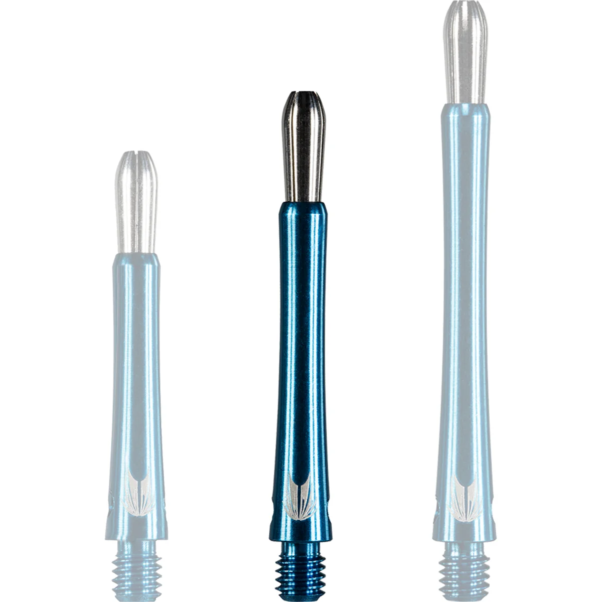 Die Target Grip Style Shafts blau aus Aluminium sind die perfekte Kombination aus Stil und Funktionalität. Erhältlich in drei Längen und ausgestattet mit einem 2BA Gewinde, bieten diese Shafts eine hervorragende Passform für Deine Darts.