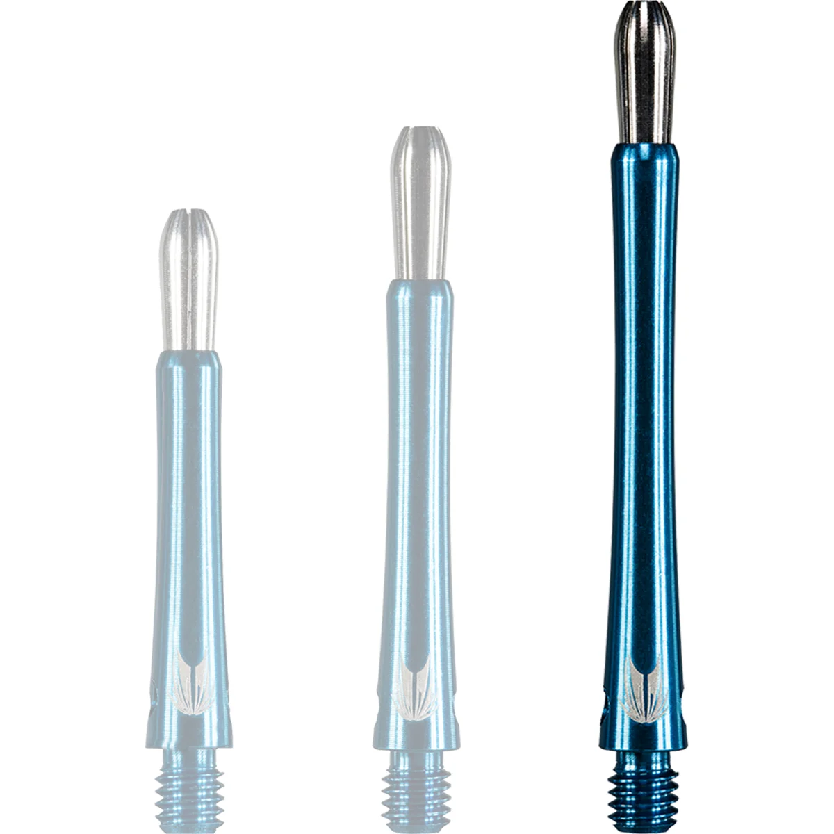 Die Target Grip Style Shafts blau aus Aluminium sind die perfekte Kombination aus Stil und Funktionalität. Erhältlich in drei Längen und ausgestattet mit einem 2BA Gewinde, bieten diese Shafts eine hervorragende Passform für Deine Darts.